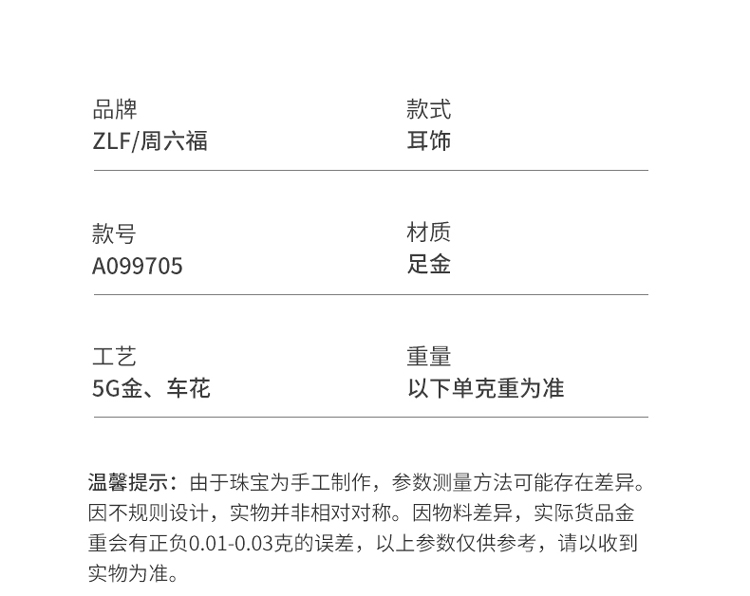 周六福5G黄金戒指女计价足金爆闪方糖手饰节日礼物官方旗舰店