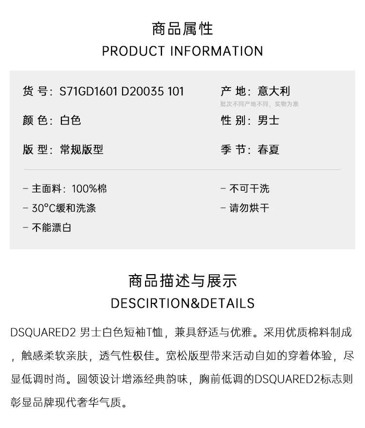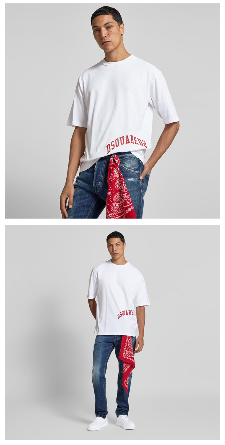 DSQUARED2 男士字母徽标印花棉质圆领短袖T恤 白色 S71GD1601 D20035 101