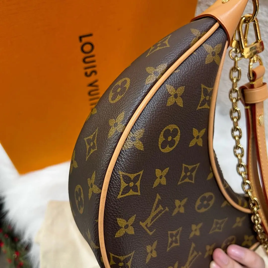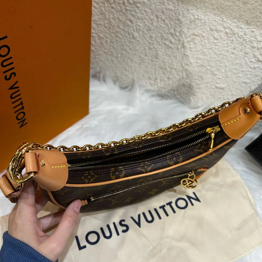 【商品详情】正品二手 LV looping 老花 豌豆 月亮包🌙 99新 23*12 芯片款 大全套配件:票 肩带 防尘袋 盒子。老花经典 复古优雅