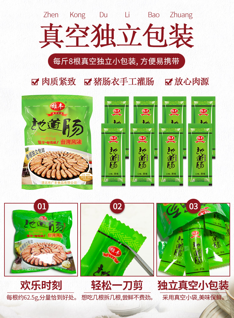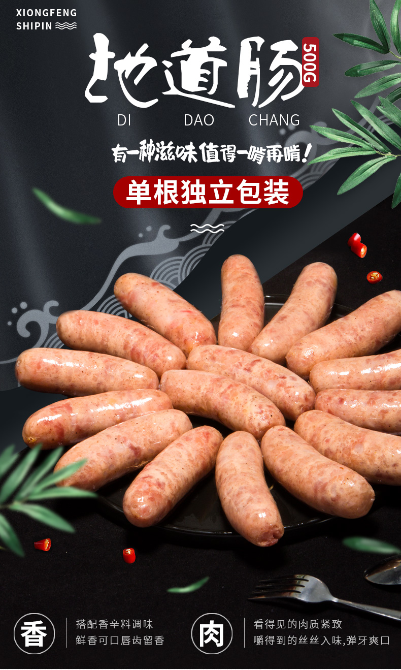 雄丰地道肠500g*4袋共32根火山石烤肠独立包装