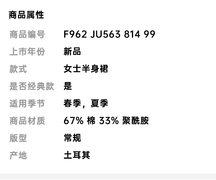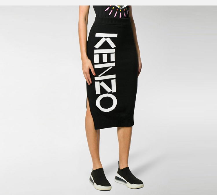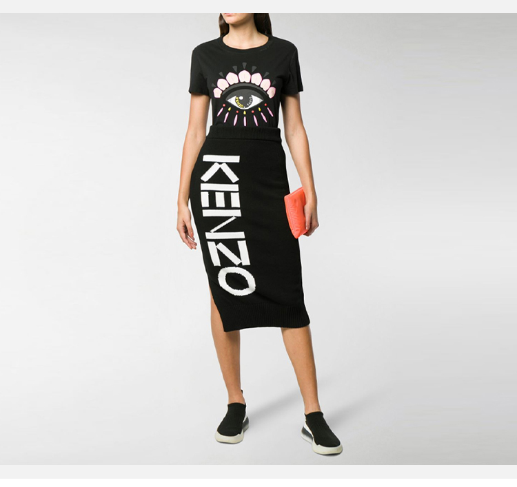 KENZO 高田贤三 女士棉质字母徽标刺绣半身裙 黑色 F962 JU563 814 99
