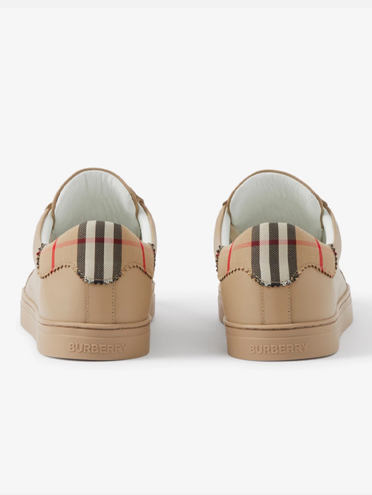 【二】BURBERRY 巴宝莉 男士皮革拼格纹棉质休闲运动鞋 卡其色 8065532 A7026