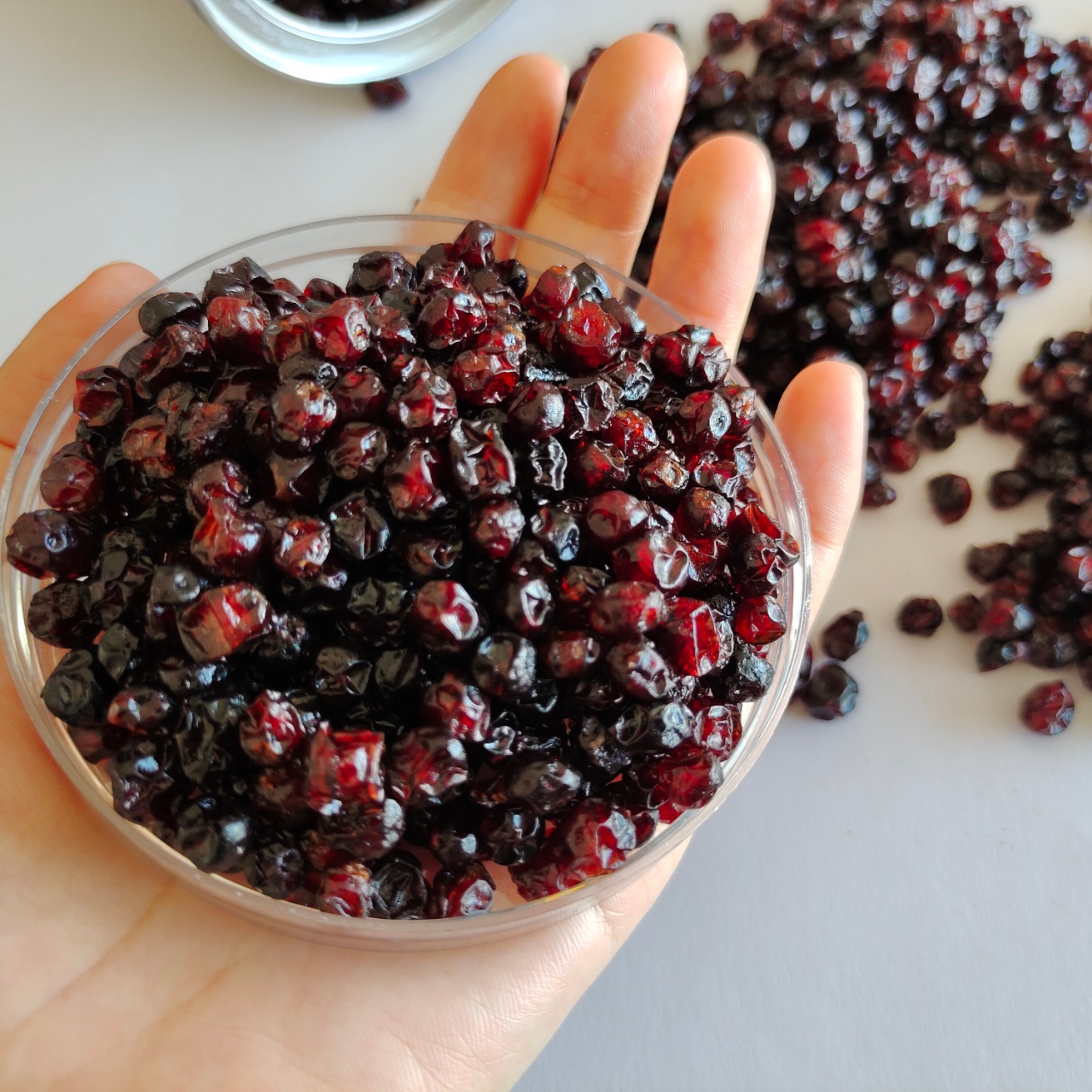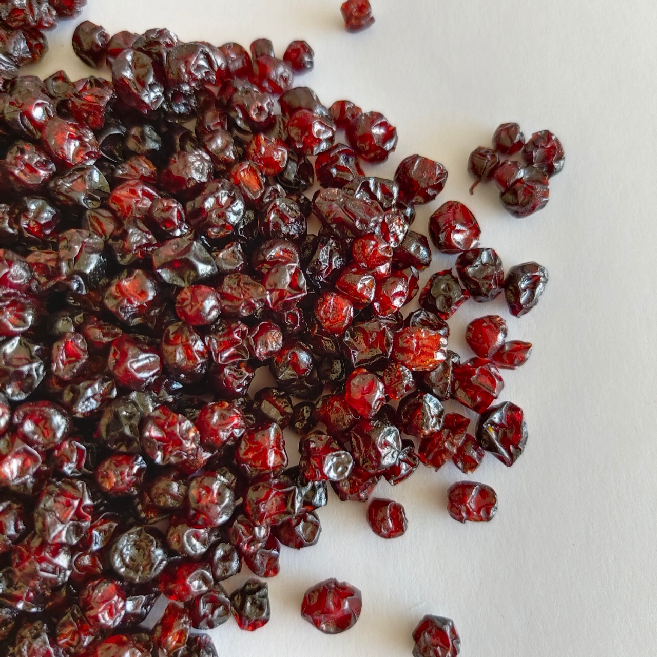 选取整颗蔓越莓,保留果肉精华,果干很新鲜,半透明的红色颗粒,看起就很诱人