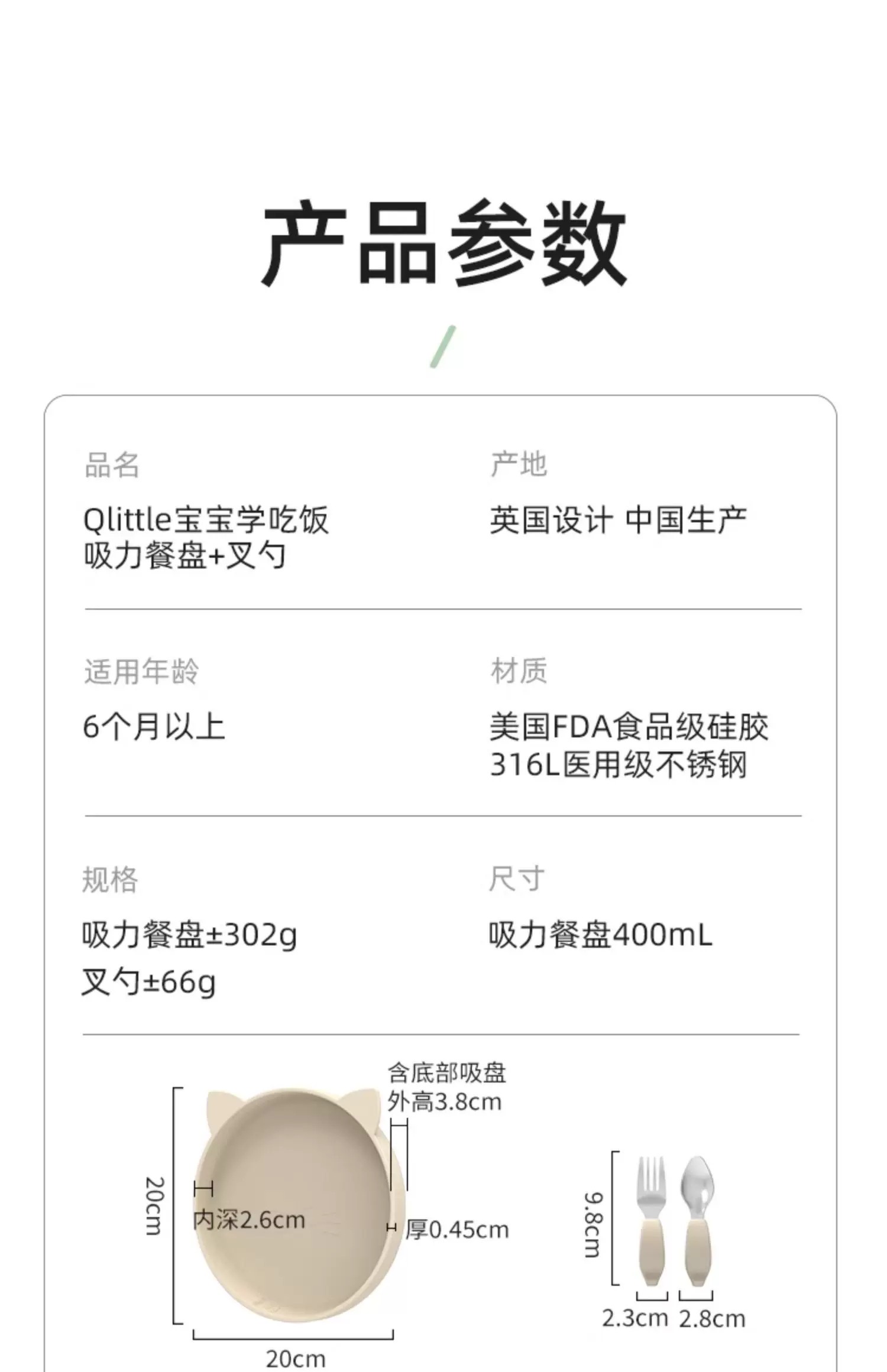 【品牌直供】Qlittle辅食分隔盘+叉勺套装