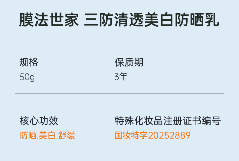 【美白防晒】膜法世家377三防清透美白防晒乳50g