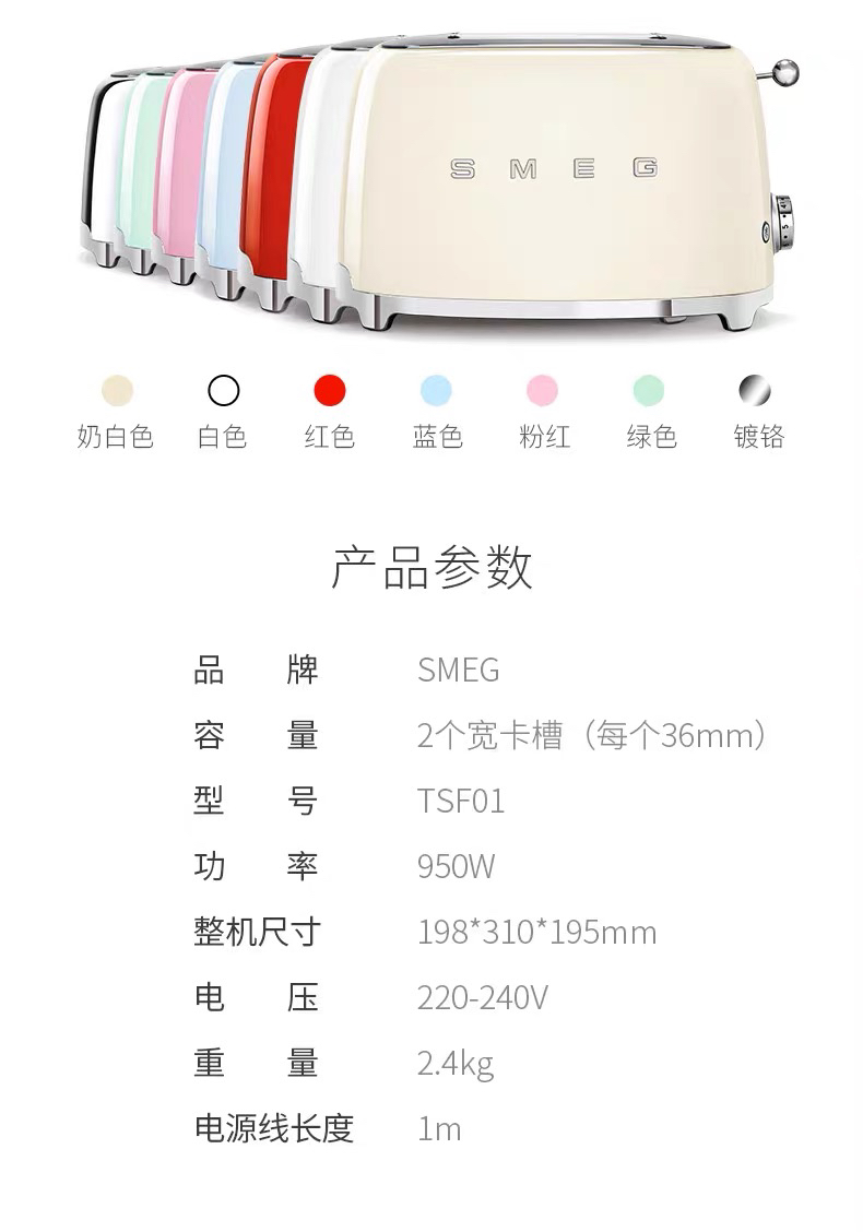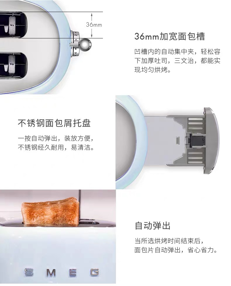 SMEG斯麦格 TSF01多功能复古烤面包机家用早餐机