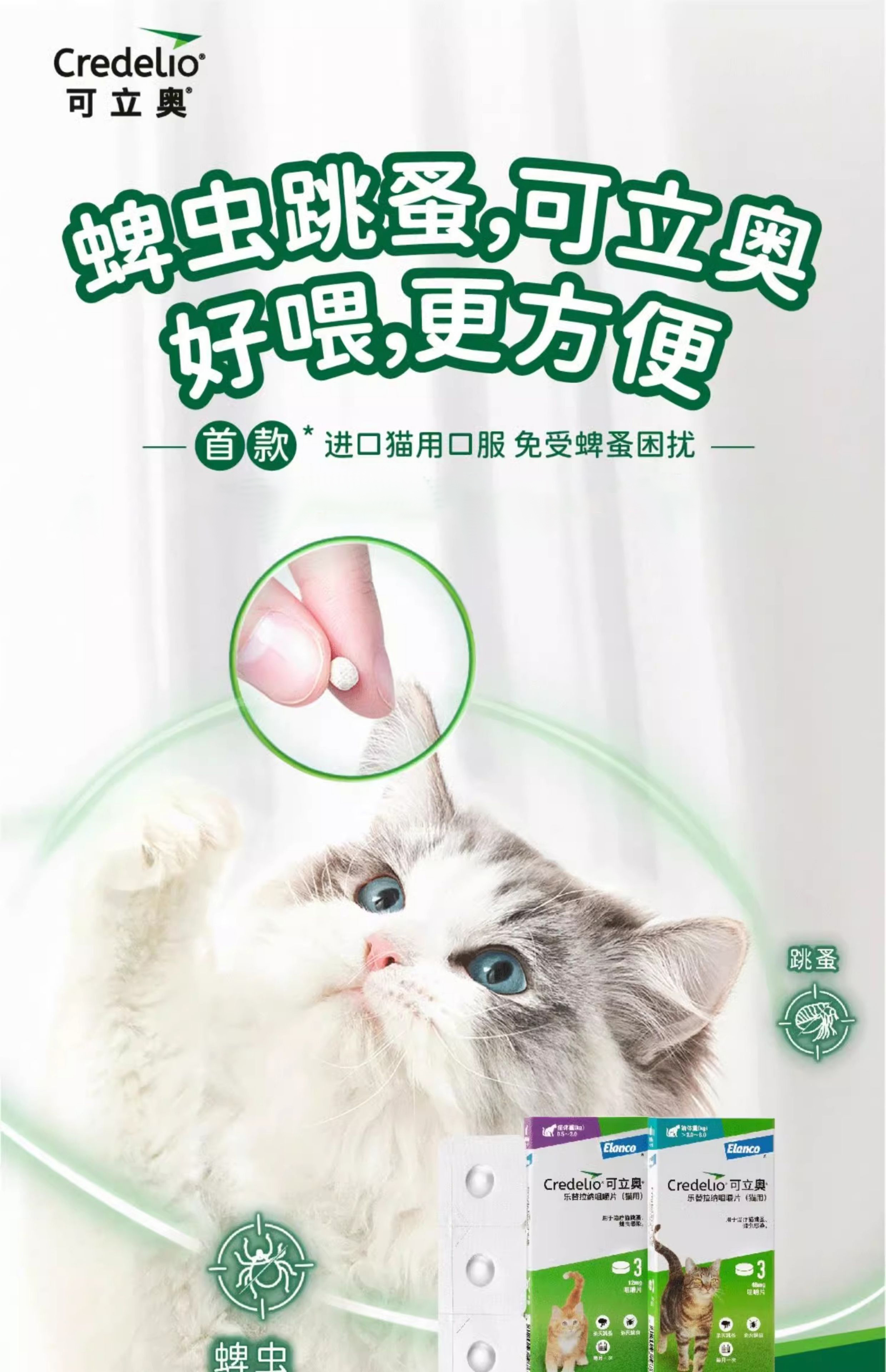 拜耳可立奥猫用乐替拉纳咀嚼片跳蚤蜱虫猫咪口服体外驱虫法国进口