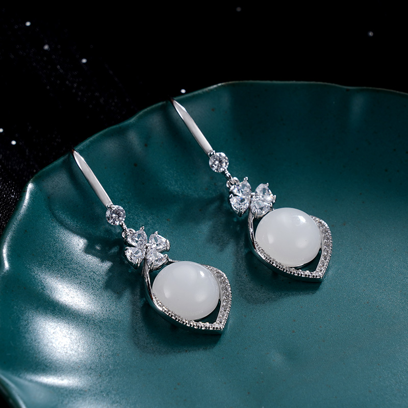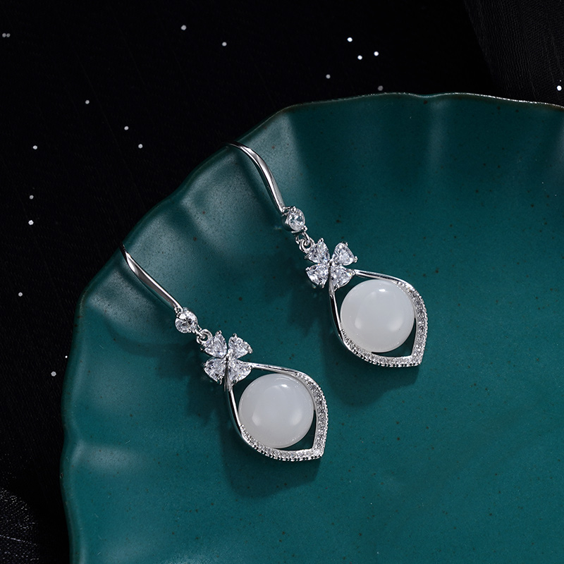 【寓意】:耳饰以四叶草为灵感设计,叶片巧妙镶嵌锆石,与白玉相得益彰,清新秀雅,温润饱满。寓意美丽与气质伴随,幸运与希望常在。