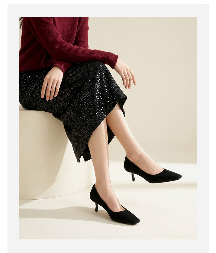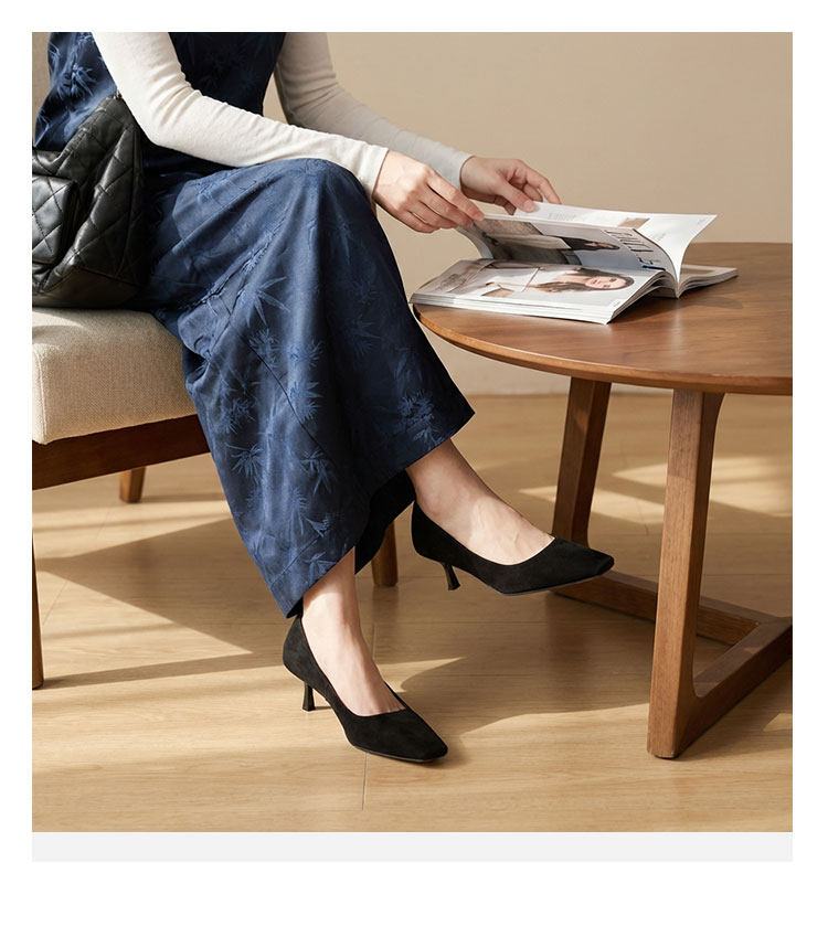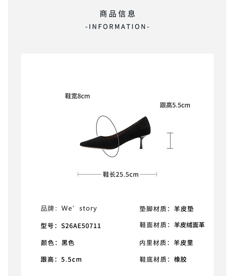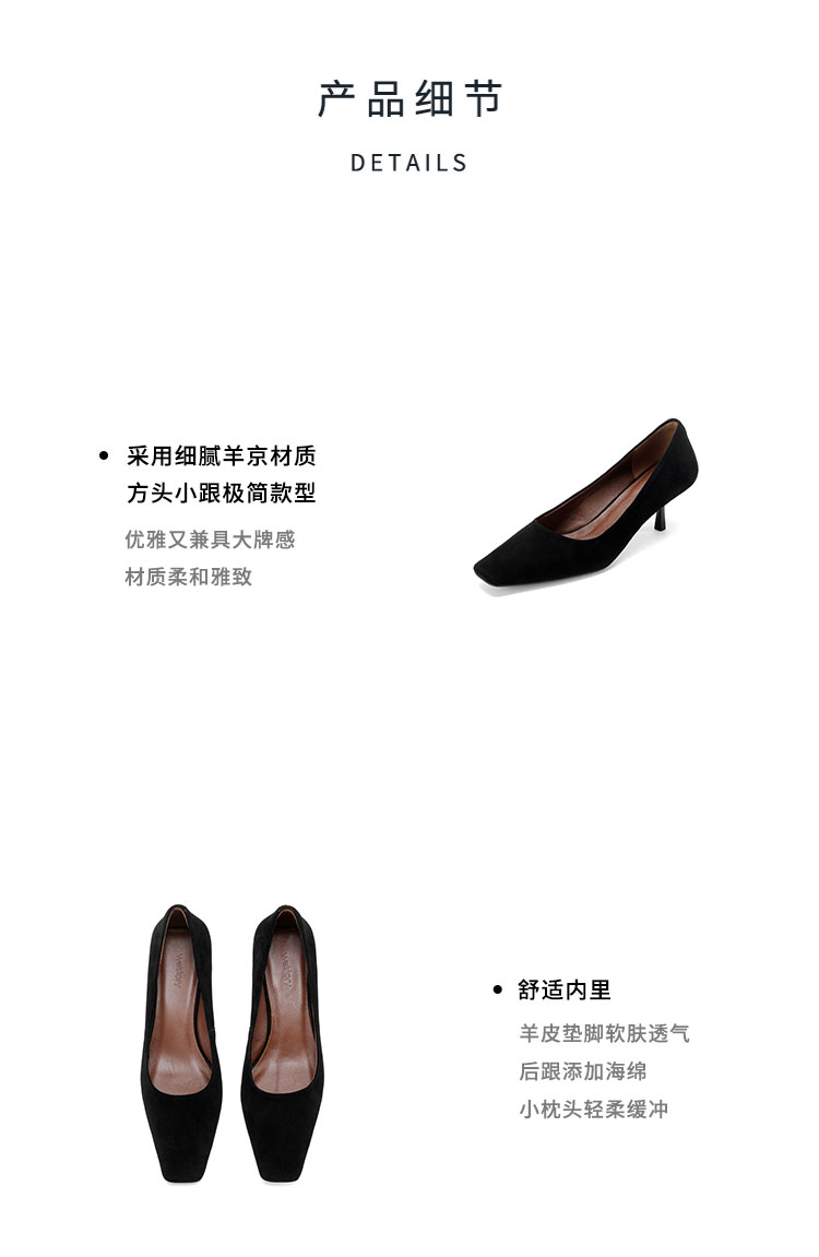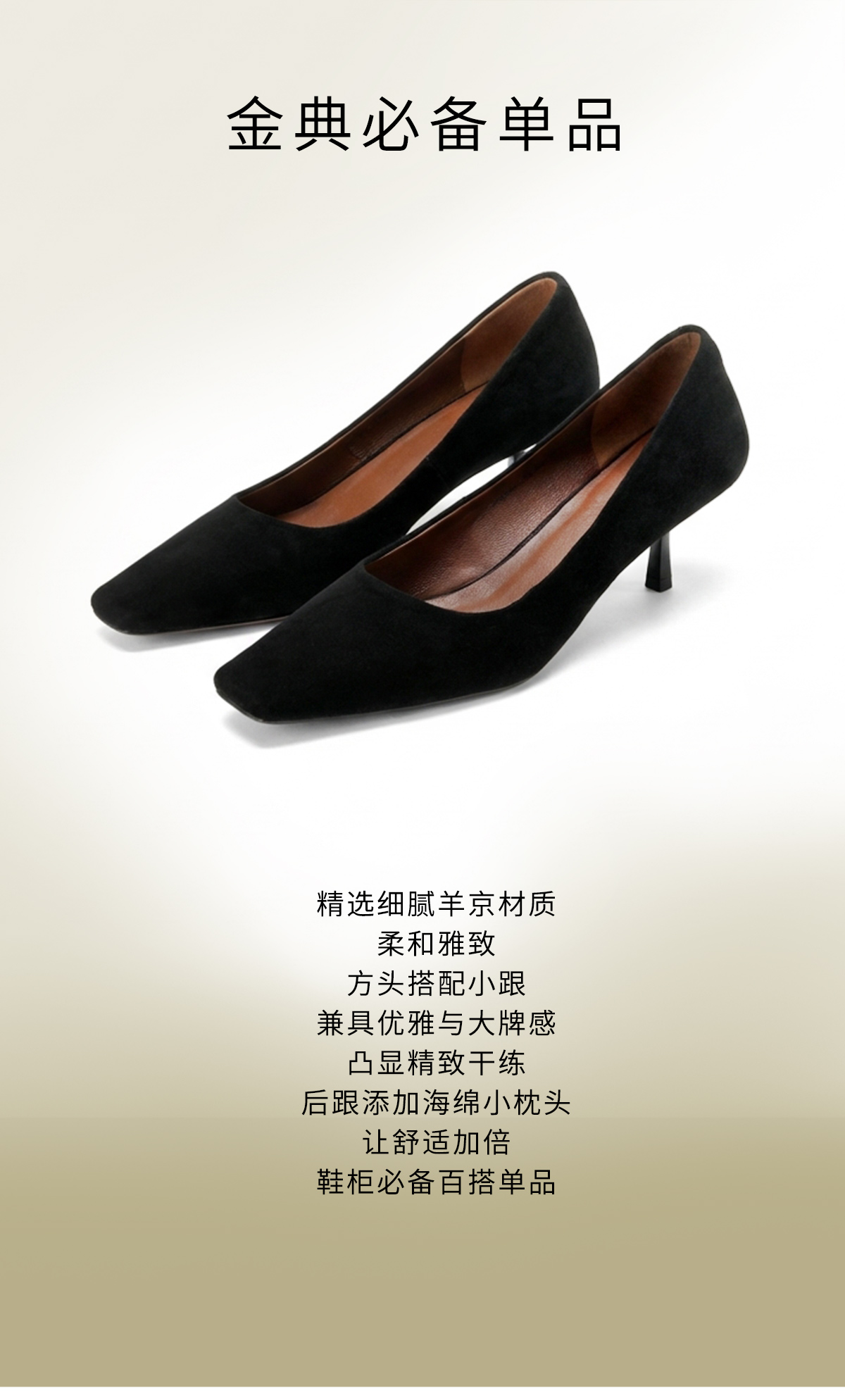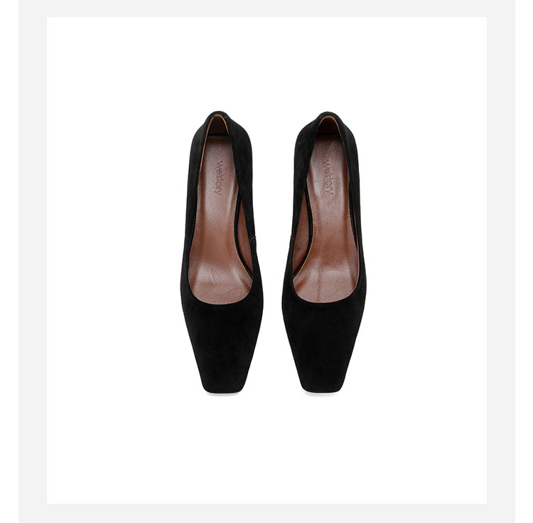 westory2026年春季小方头中跟羊京金典小黑鞋通勤百搭浅口单鞋S26AE50711