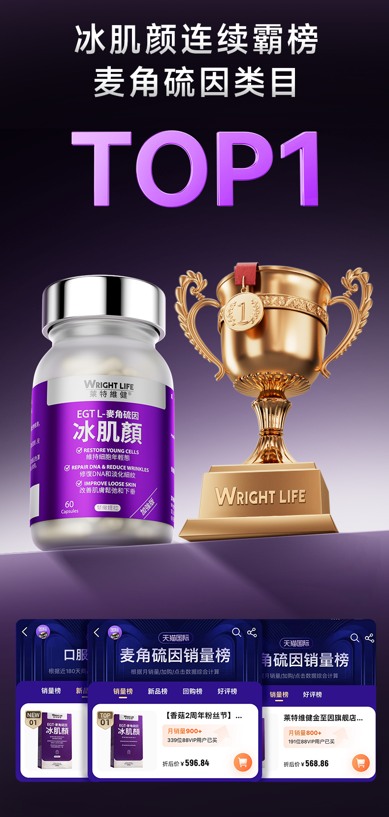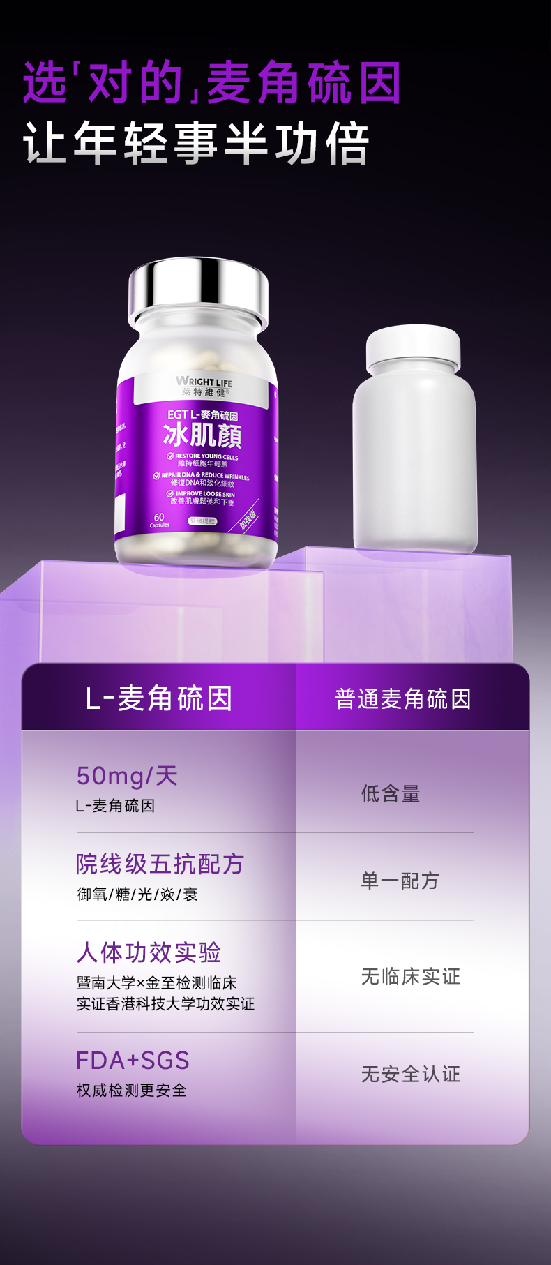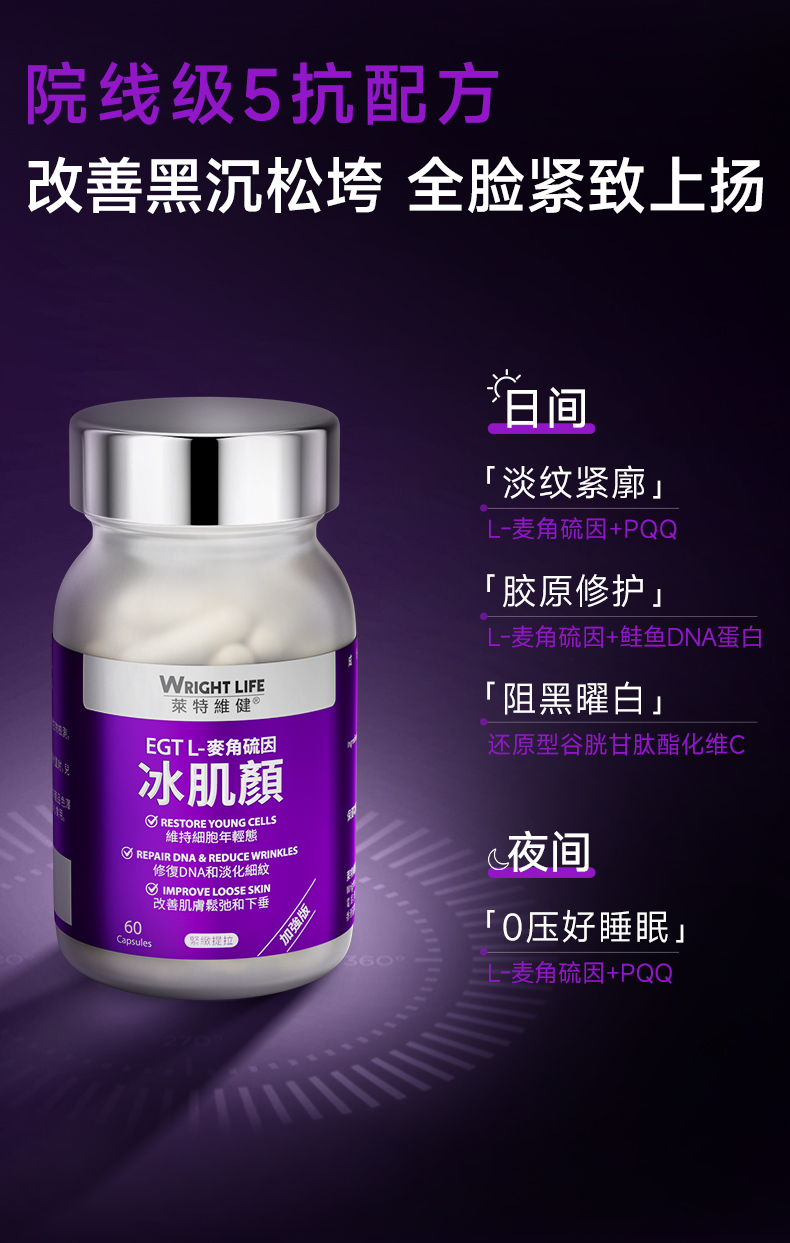 保税直发 WRIGHTLIFE 莱特维健 麦角硫因胶囊 60粒/盒 2代 1盒装/2盒装/3盒装