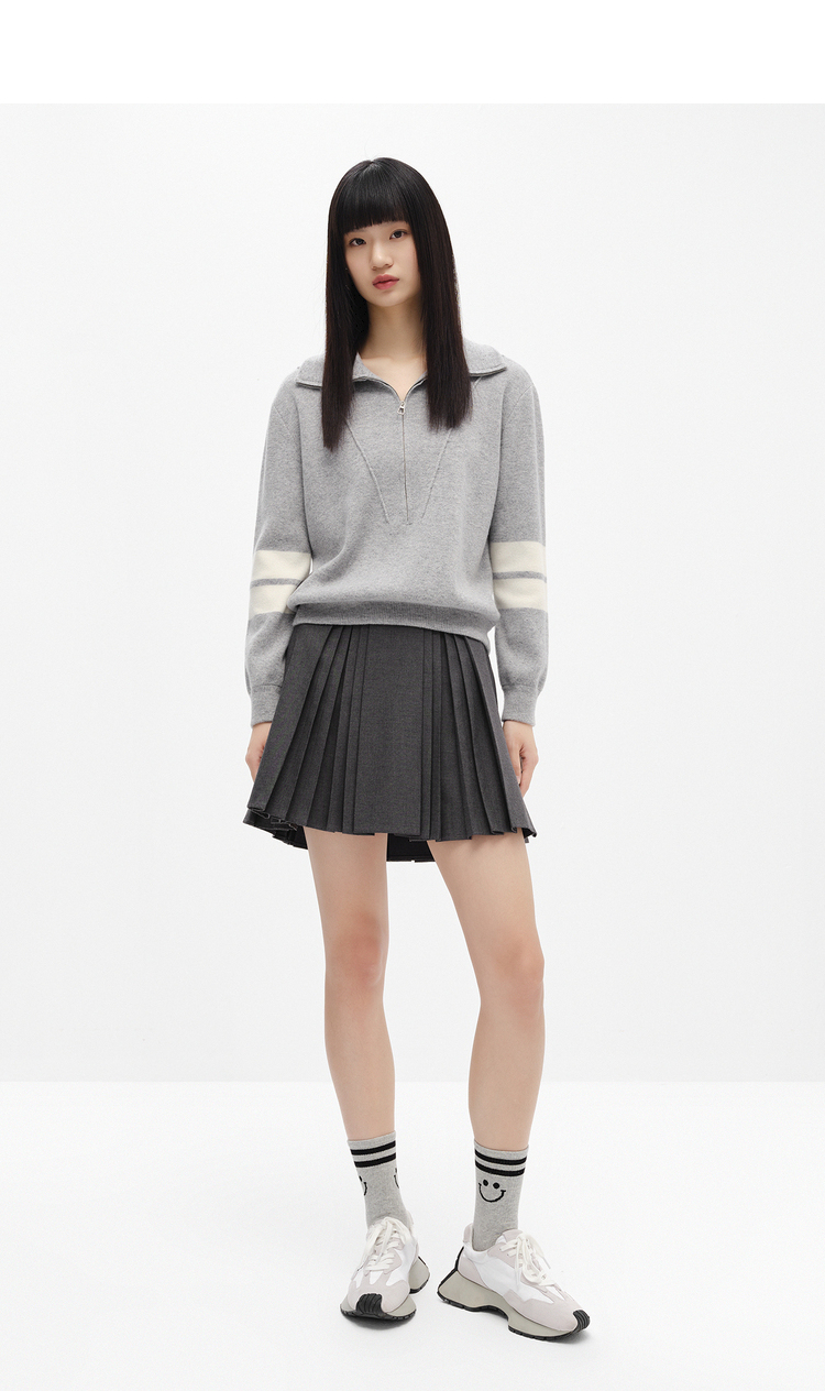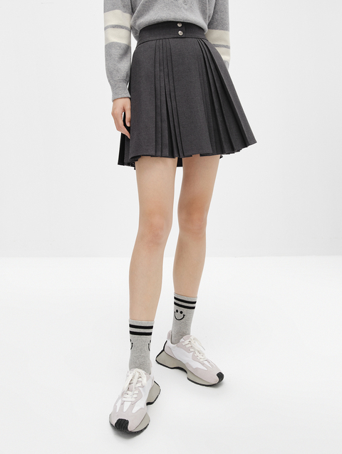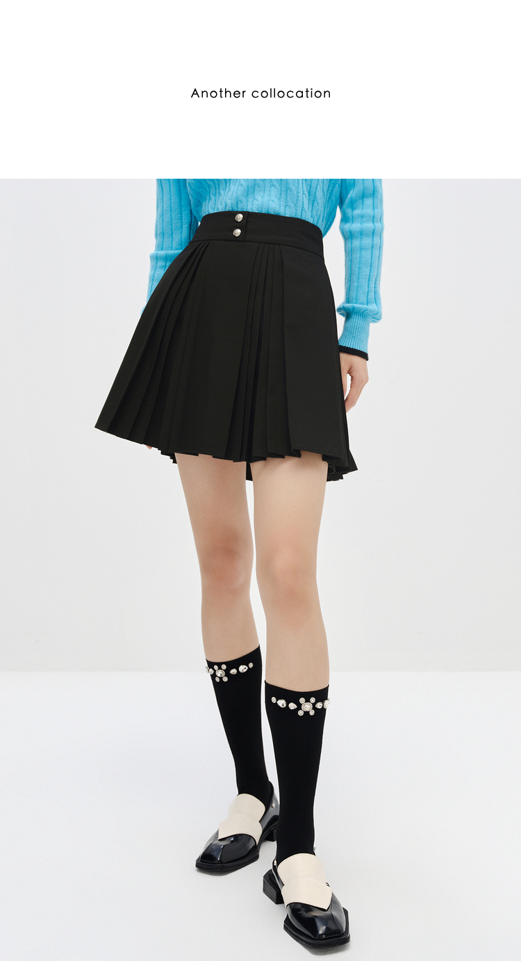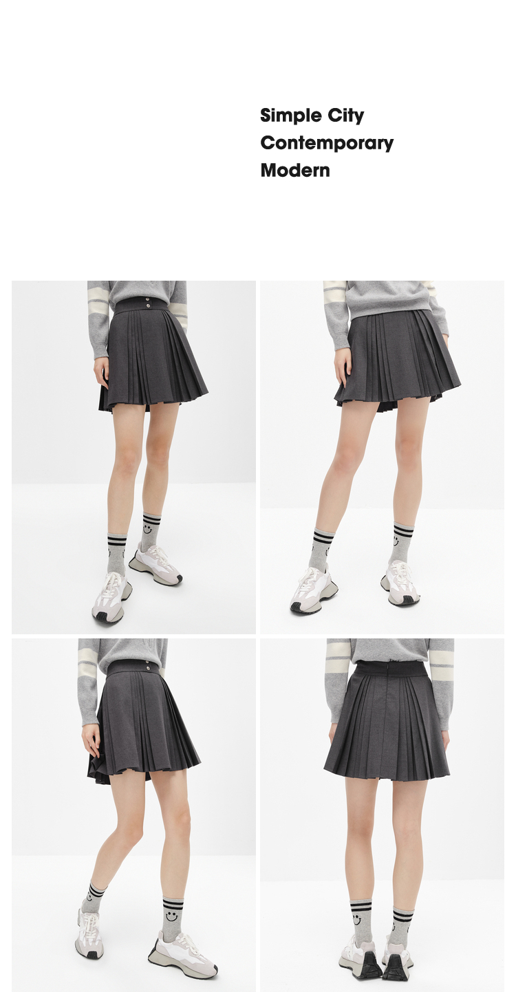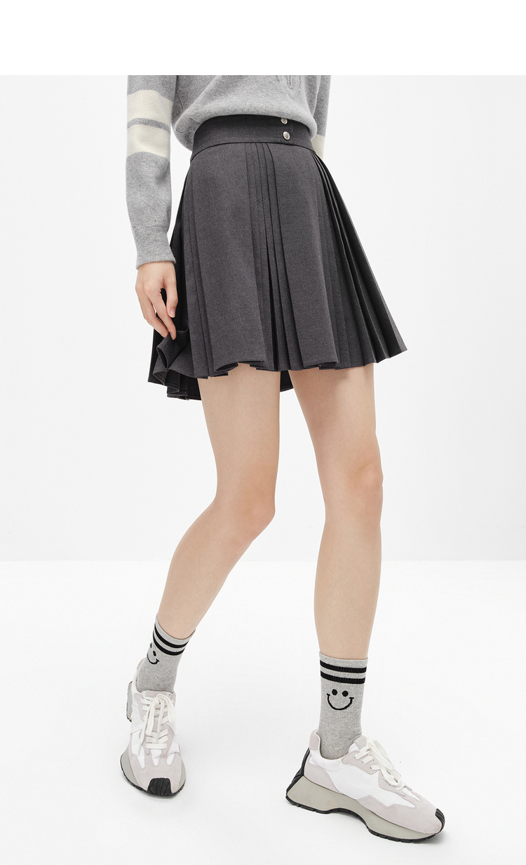NEELLY纳俪商场同款高腰半身裙女韩系百褶裙新款A字裙时尚短裙潮N22101E01022