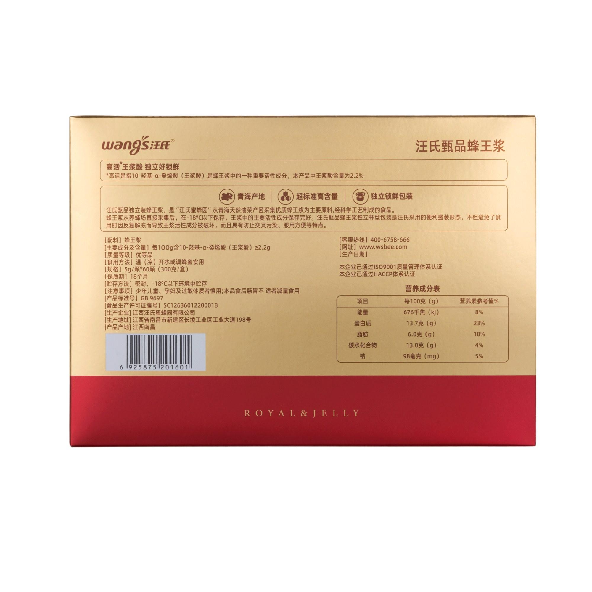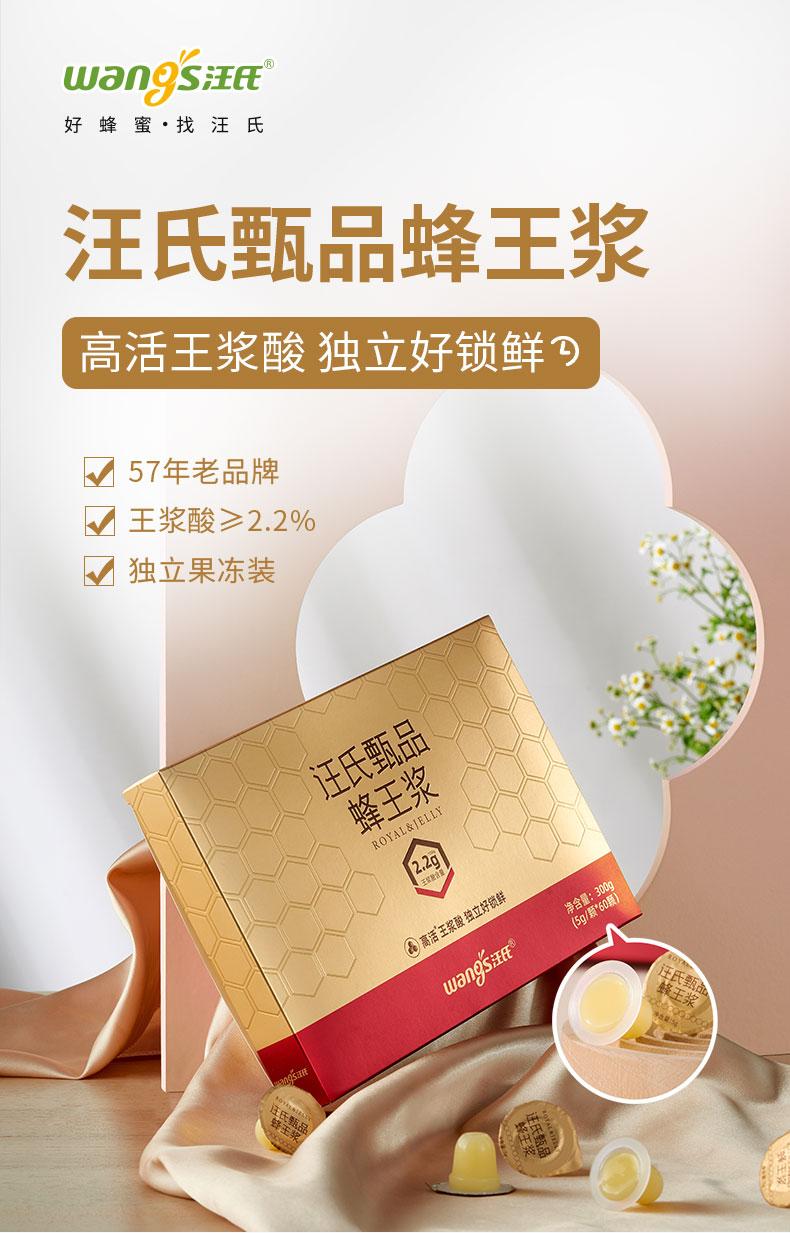 【尊享5盒装|买5月送45天】汪氏甄品蜂皇浆王浆酸含量≥2.2% 300g*5(送15g王浆片3盒,到手6个月量)