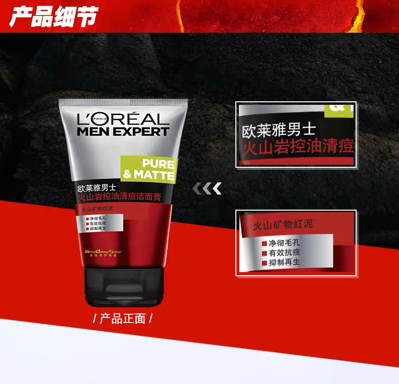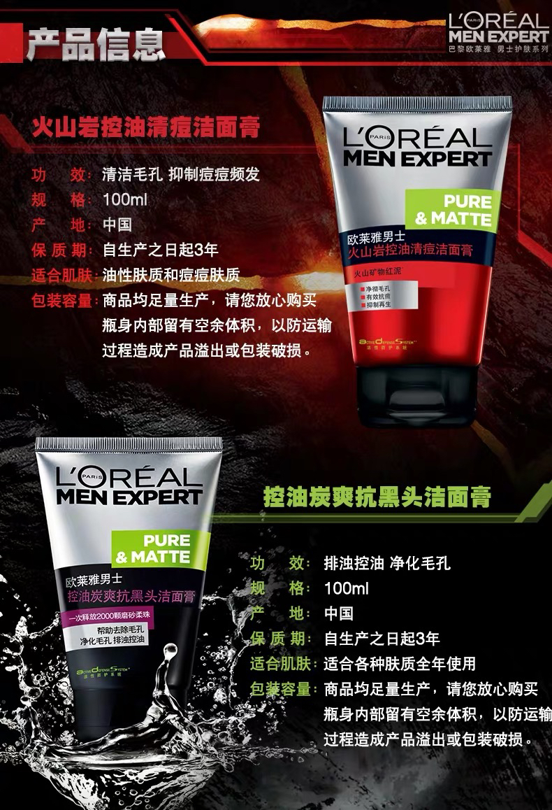 太原发货【欧莱雅男士专用洗面奶】 三大瓶 100ml 新款和旧款包装随机发货