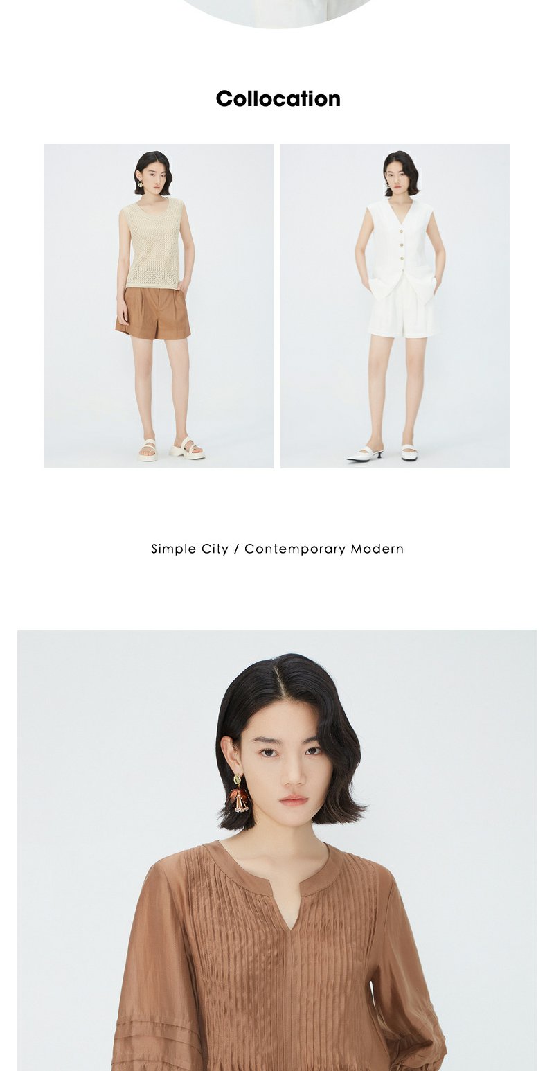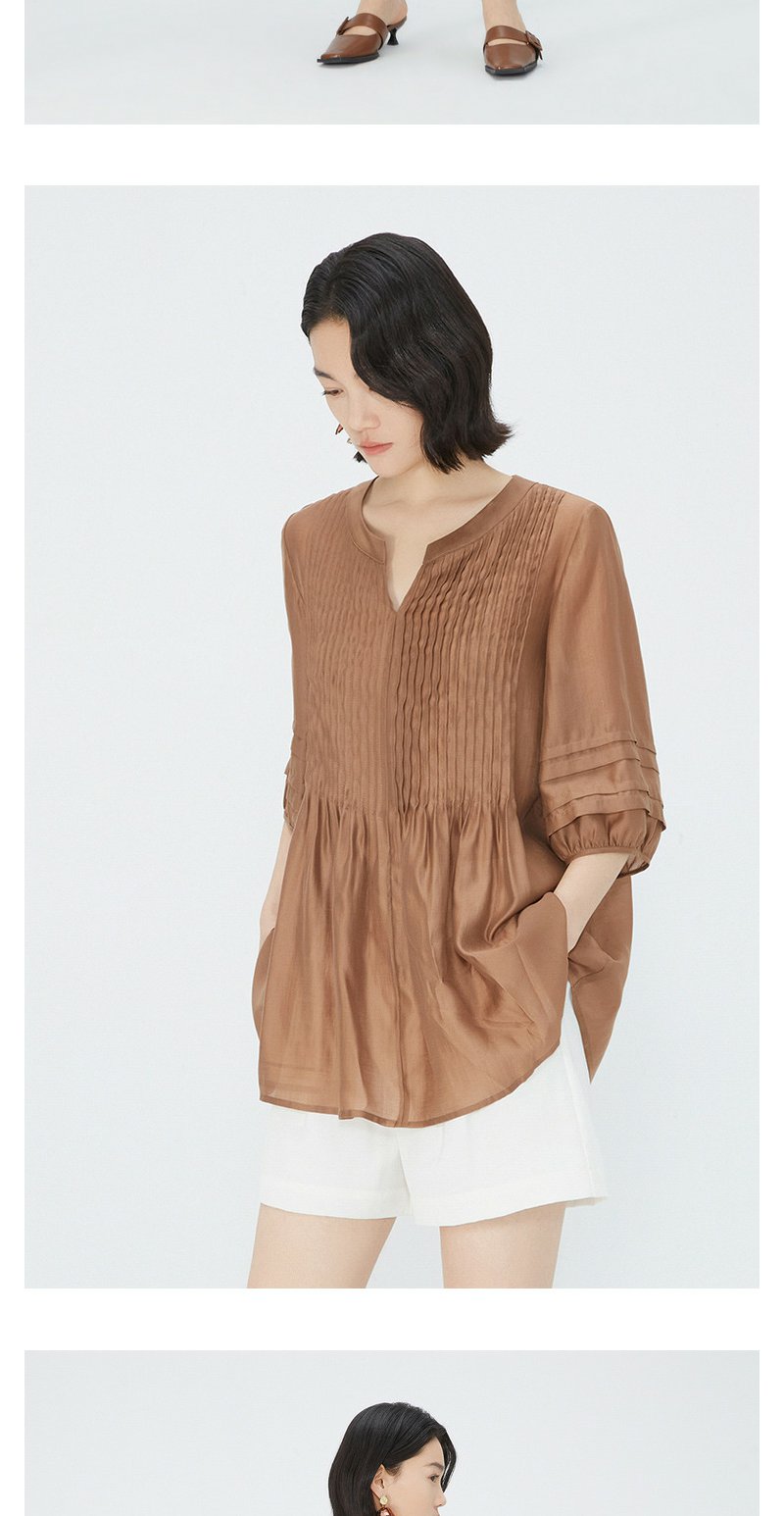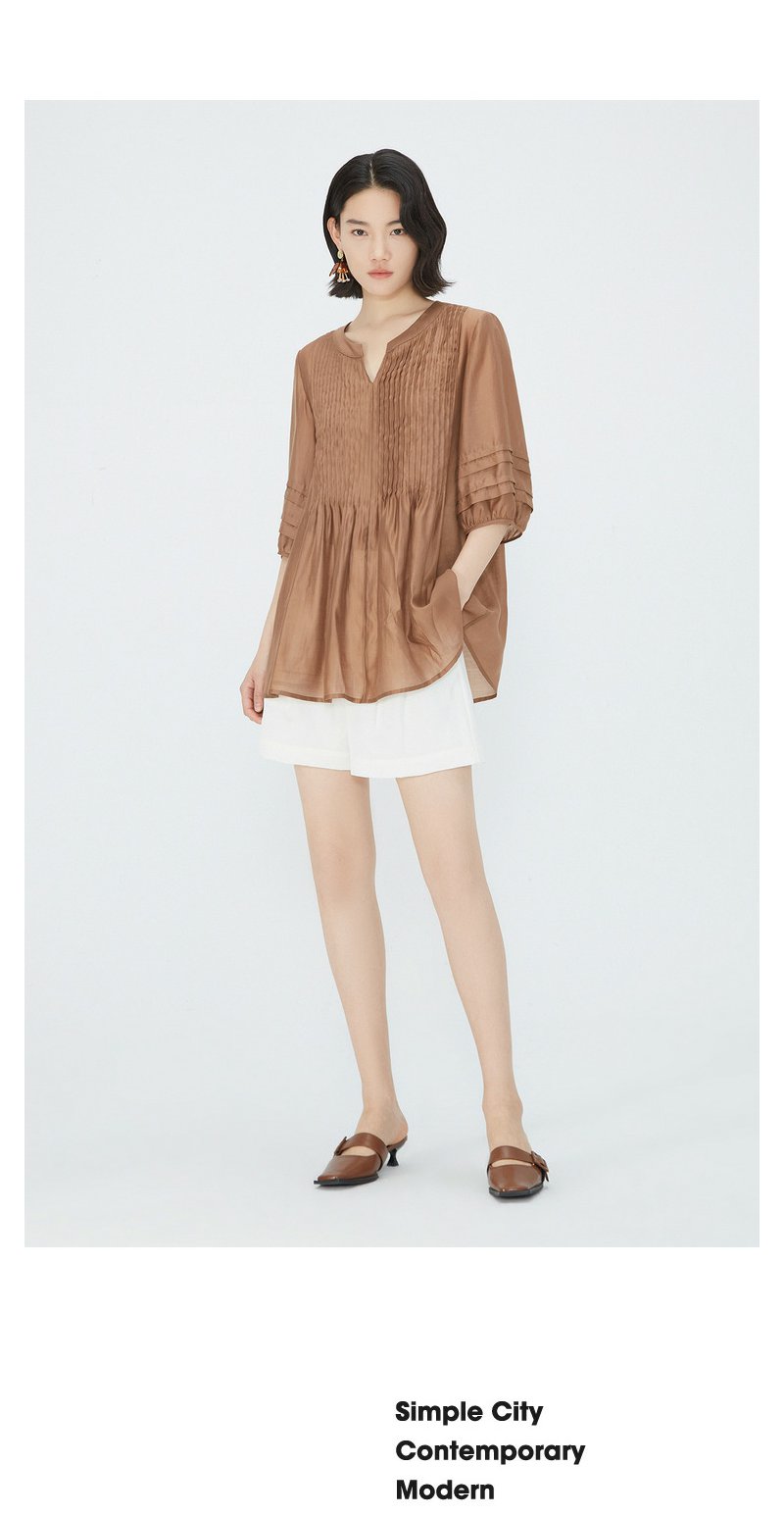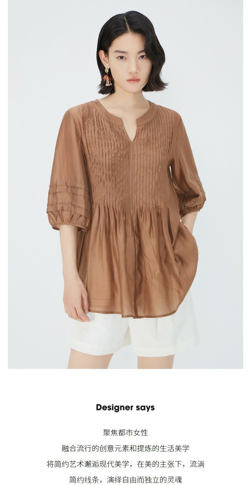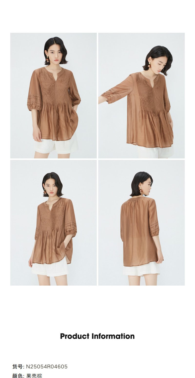 NEELLY纳俪商场同款夏季新款简约显白五分袖衬衫女宽松舒适上衣N25054R04605