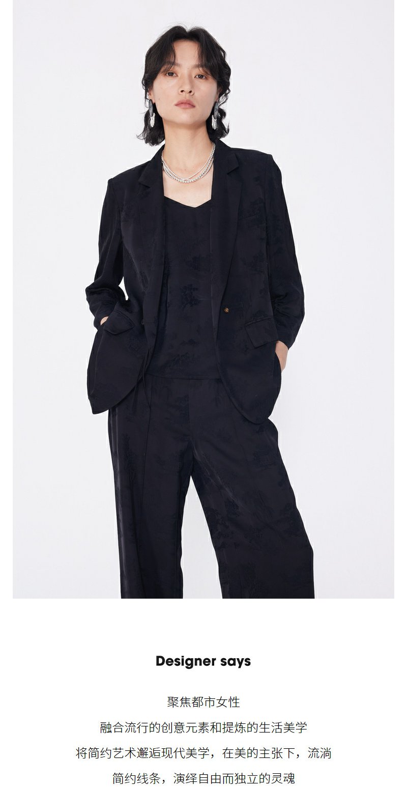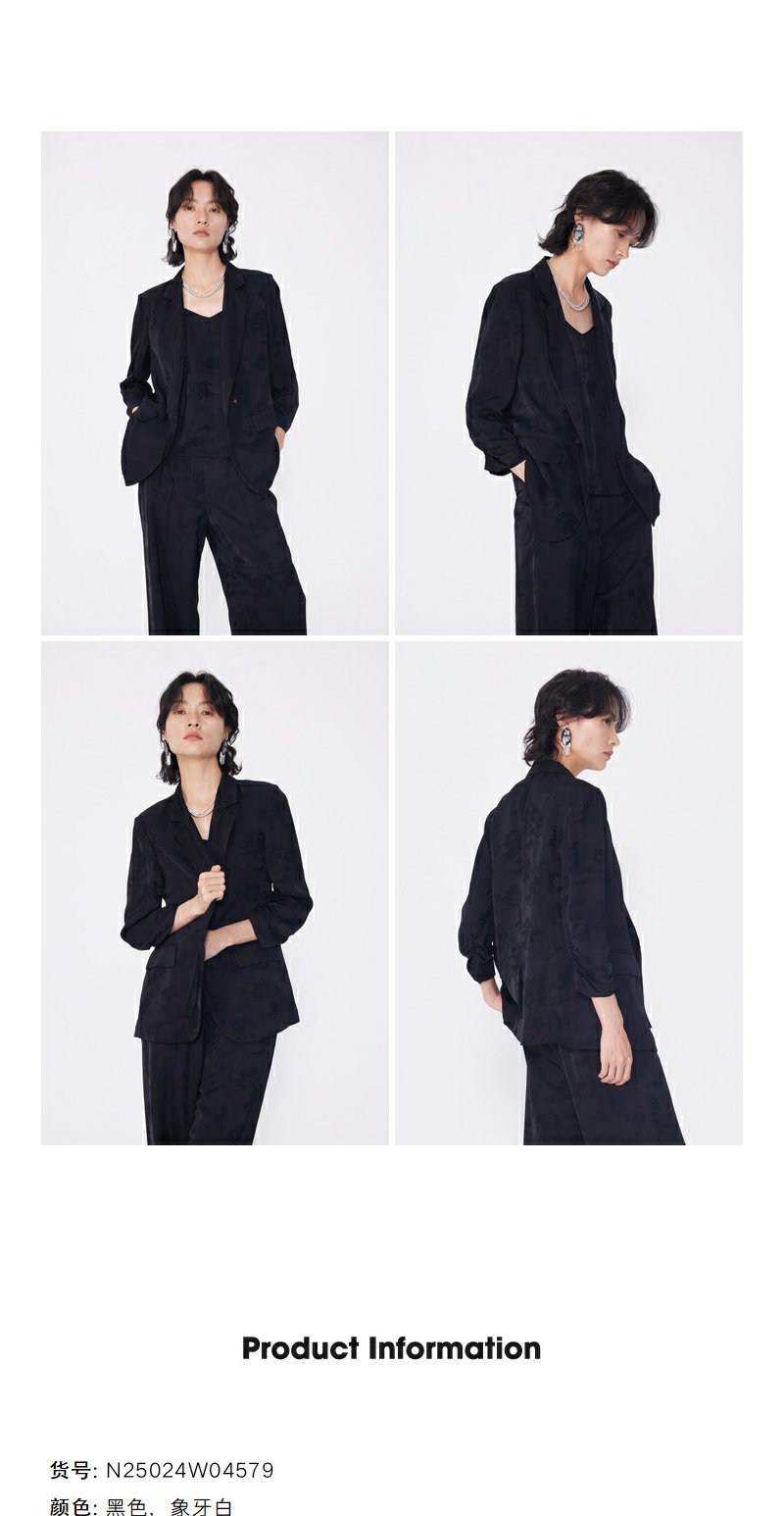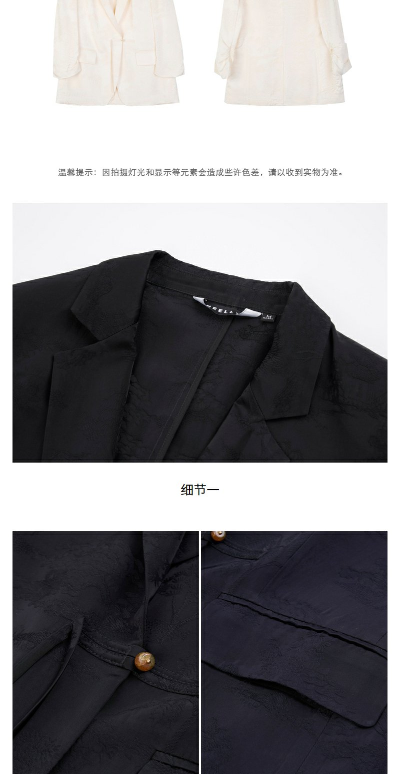 NEELLY纳俪商场同款春季新款新中式花纹外套女宽松长袖西装外套N25024W04579