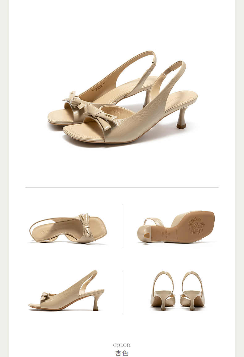 【上新】natursun时髦高跟鞋2026女新款夏天外穿细跟法式复古方头时装凉鞋N26328205