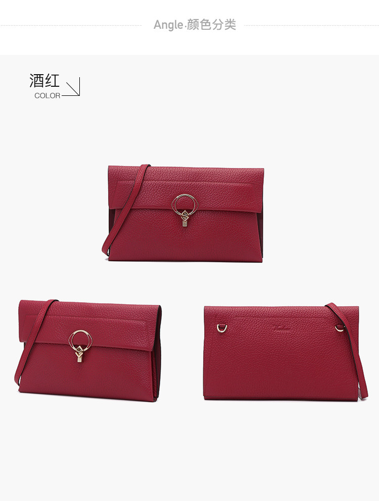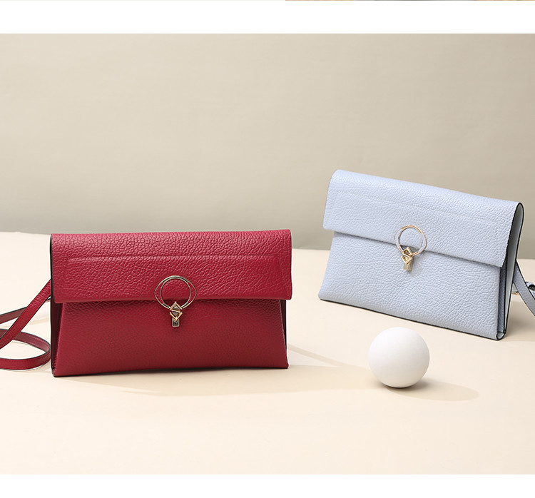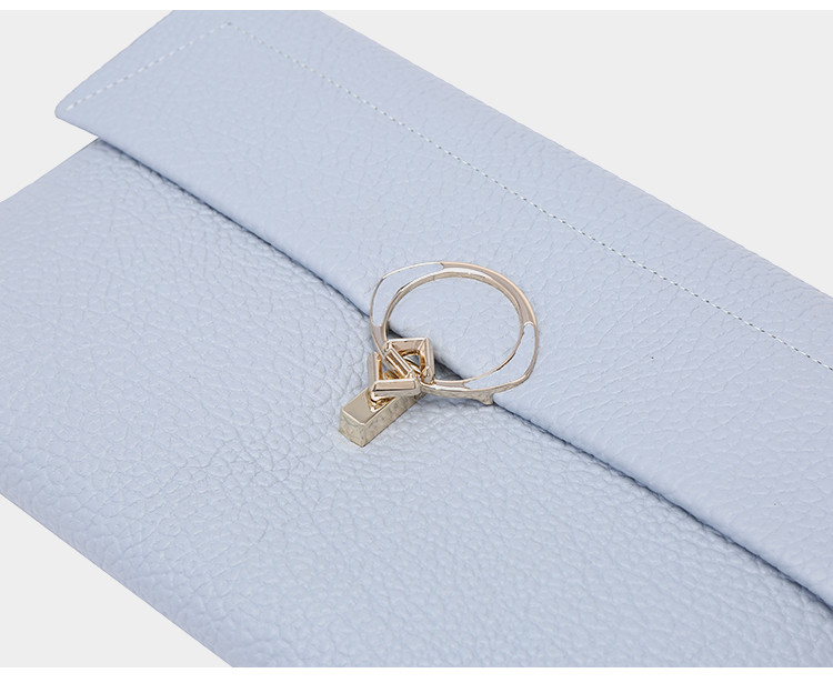 【简约轻奢】浅蓝荔枝纹皮革长款钱包 圆环锁扣设计 多卡位大容量 手拿包/斜挎两用 时尚百搭女包VSA212702 商品图4