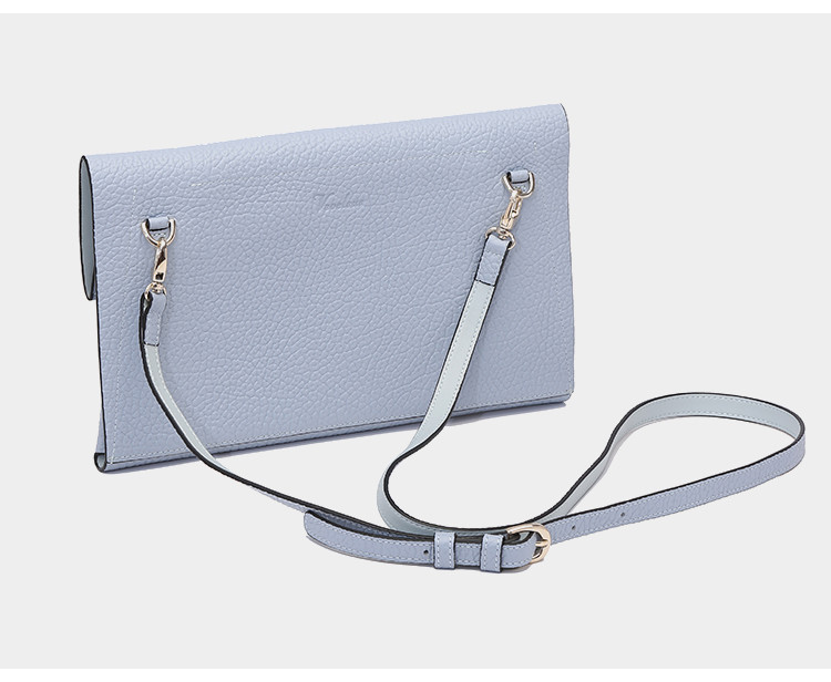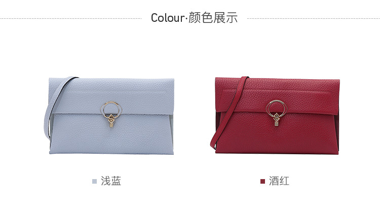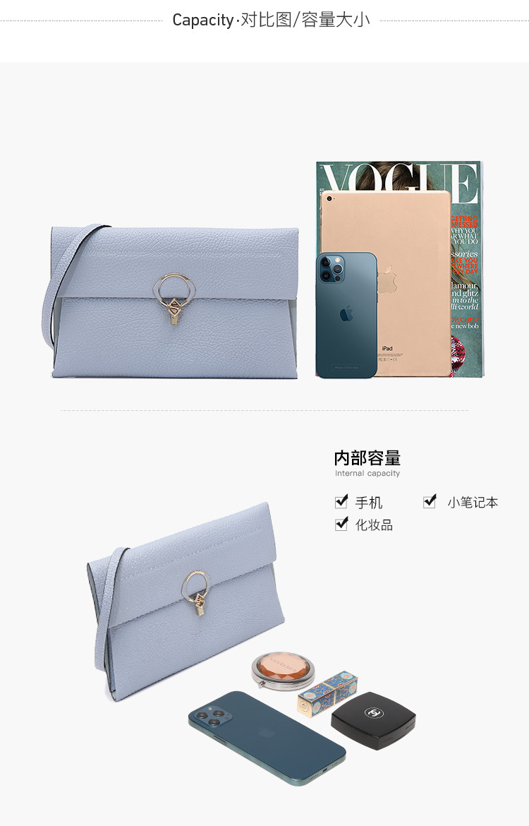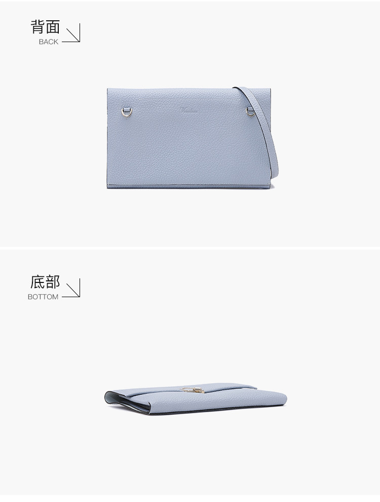 【简约轻奢】浅蓝荔枝纹皮革长款钱包 圆环锁扣设计 多卡位大容量 手拿包/斜挎两用 时尚百搭女包VSA212702 商品图6
