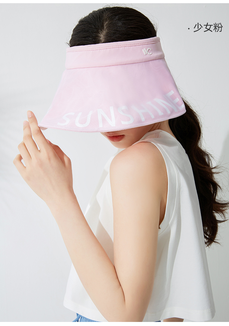 VVC夏季防晒帽女士时尚字母户外防晒帽休闲可爱粉色太阳帽
