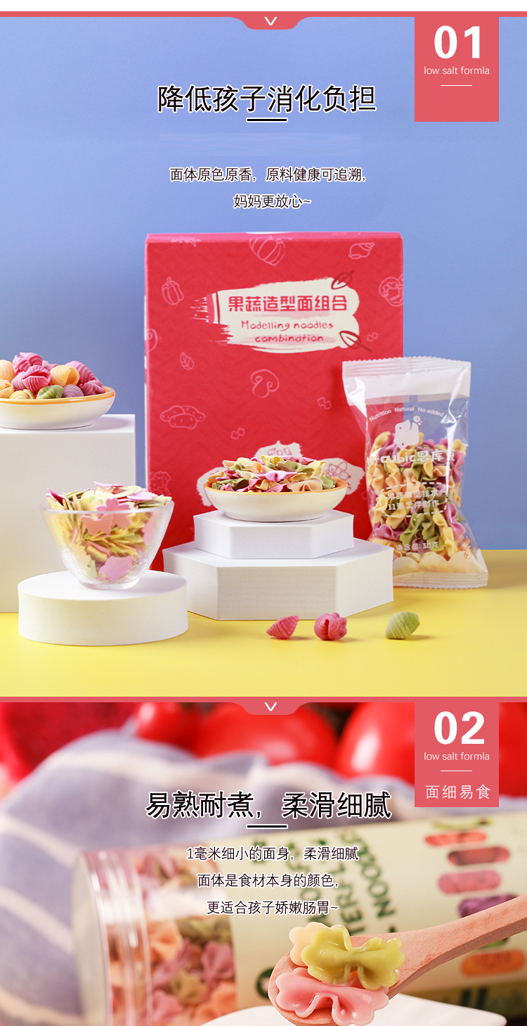 N-cubic恩库克儿童无人工添加盐面条果蔬粒粒面蝴蝶卡通海螺面片
