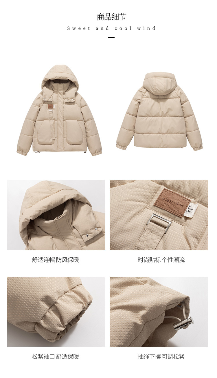 冬季厚外套【连帽面包服工装风】保暖棉衣女 夹棉外套