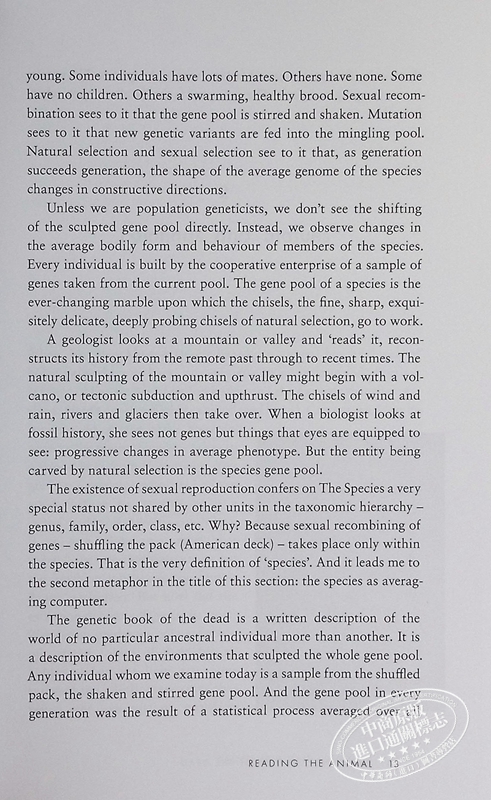 理查德·道金斯以开创性的新方法研究了所有生命的进化,他展示了如何将每种生物的身体、行为和基因解读为一本书——一本记录其祖先世界的档案。一只伪装的沙漠蜥蜴的背上“画”着一片干燥的沙石景观。它的皮肤可以解读为其祖先生存的古老沙漠的描述——以及在此之前其更远祖先的世界:一本死亡的基因书。
