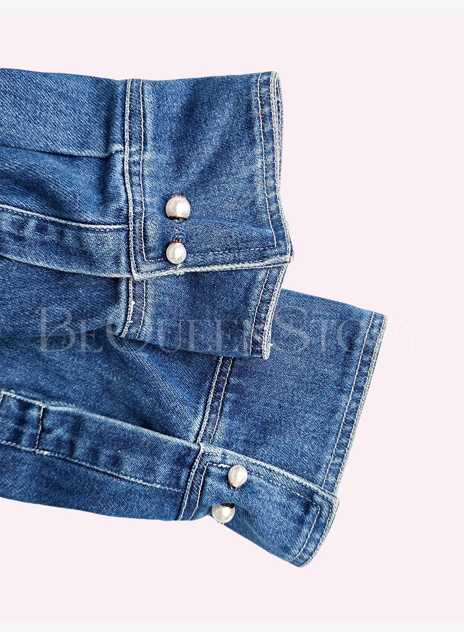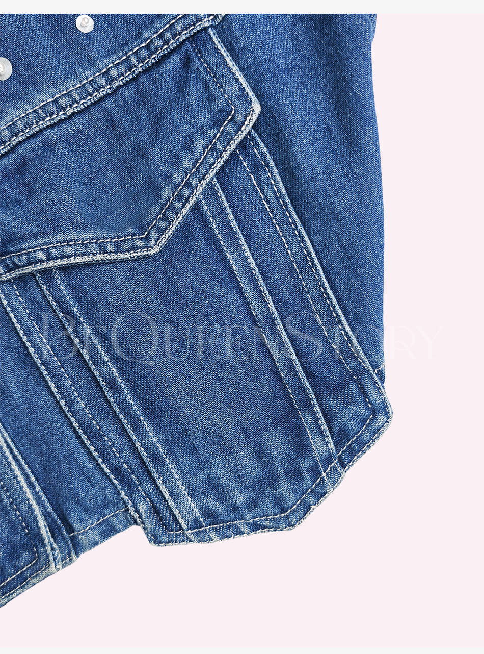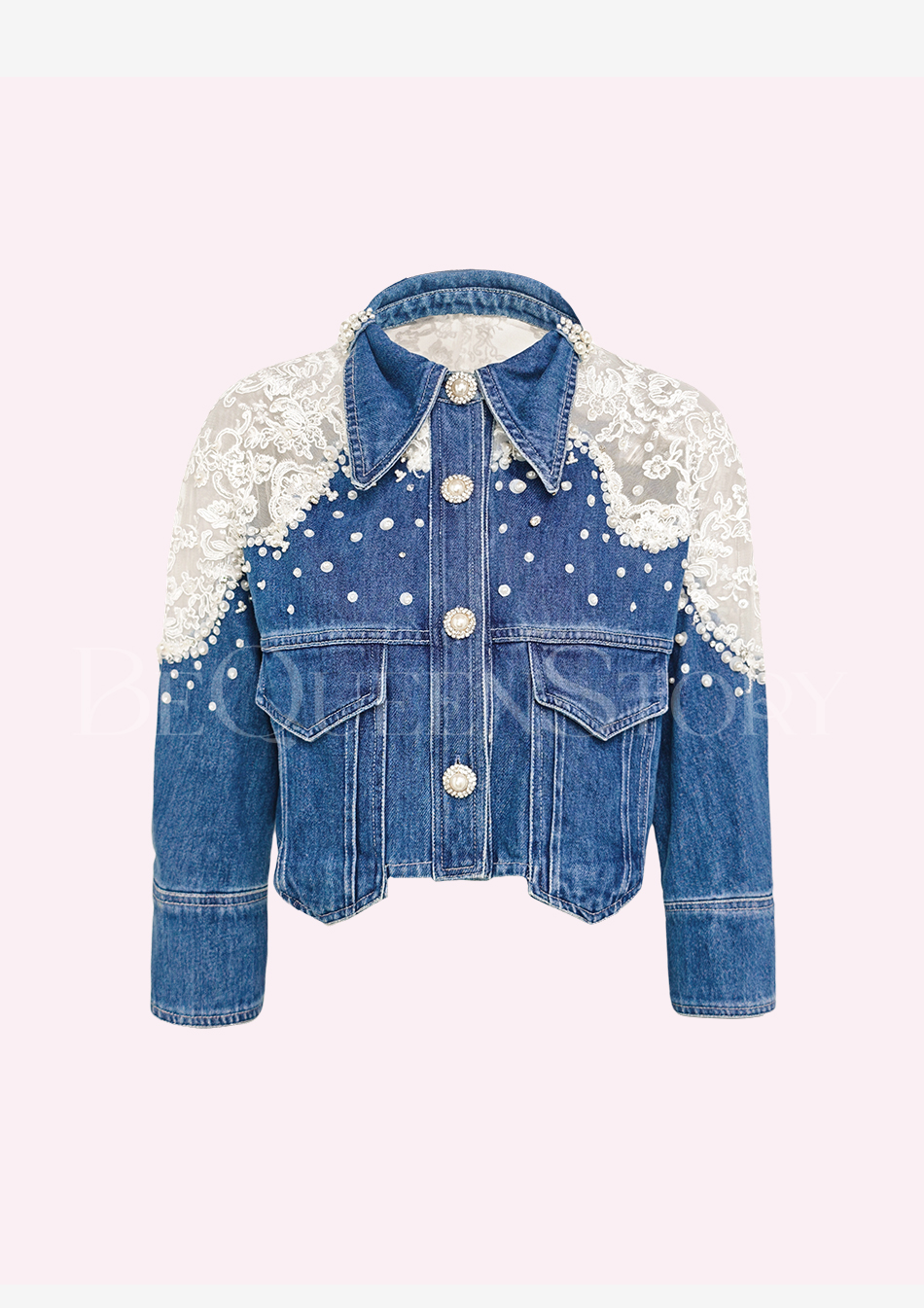 【孤品样衣,不退不换】【浪漫幻影】重工拼接蕾丝手缝亮片珍珠七分袖短款牛仔棉外套