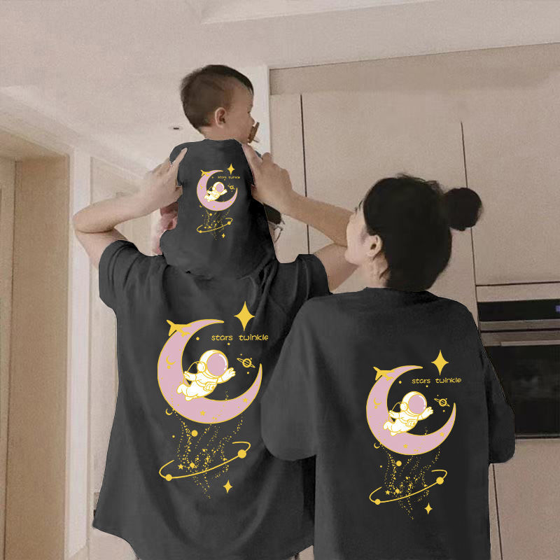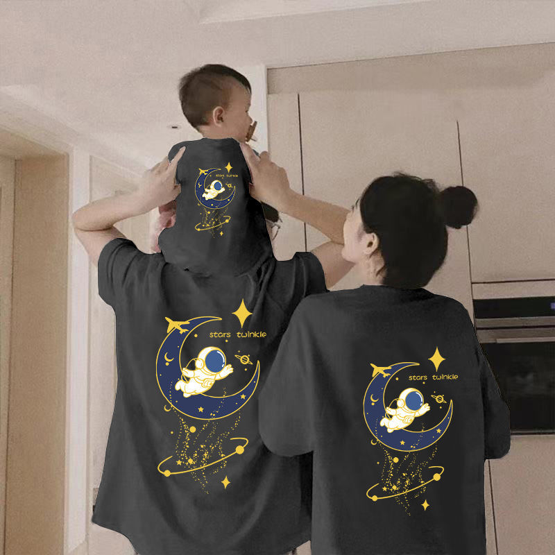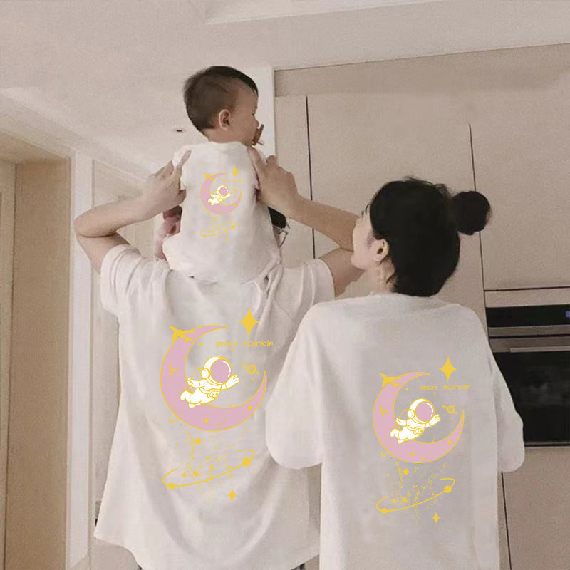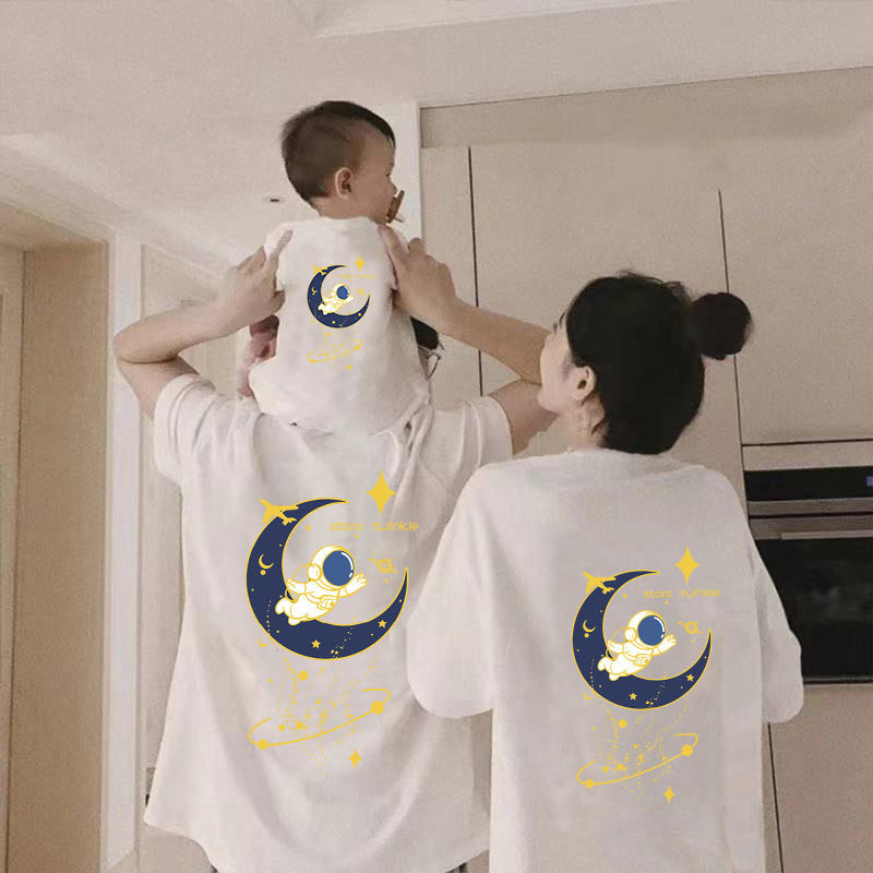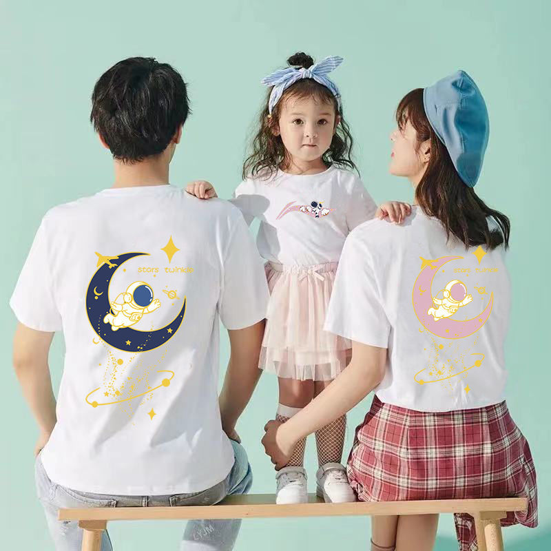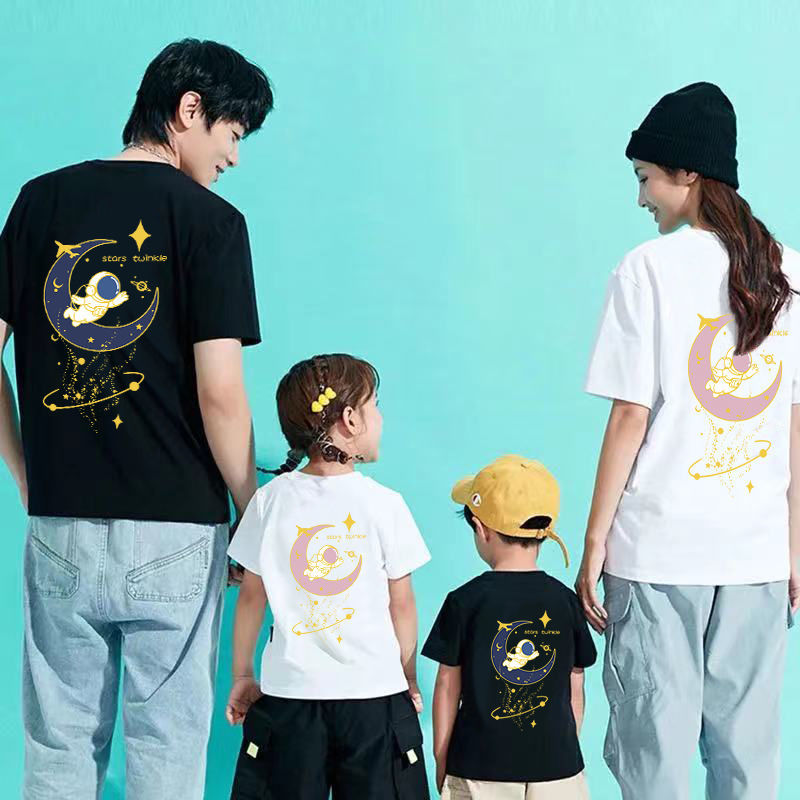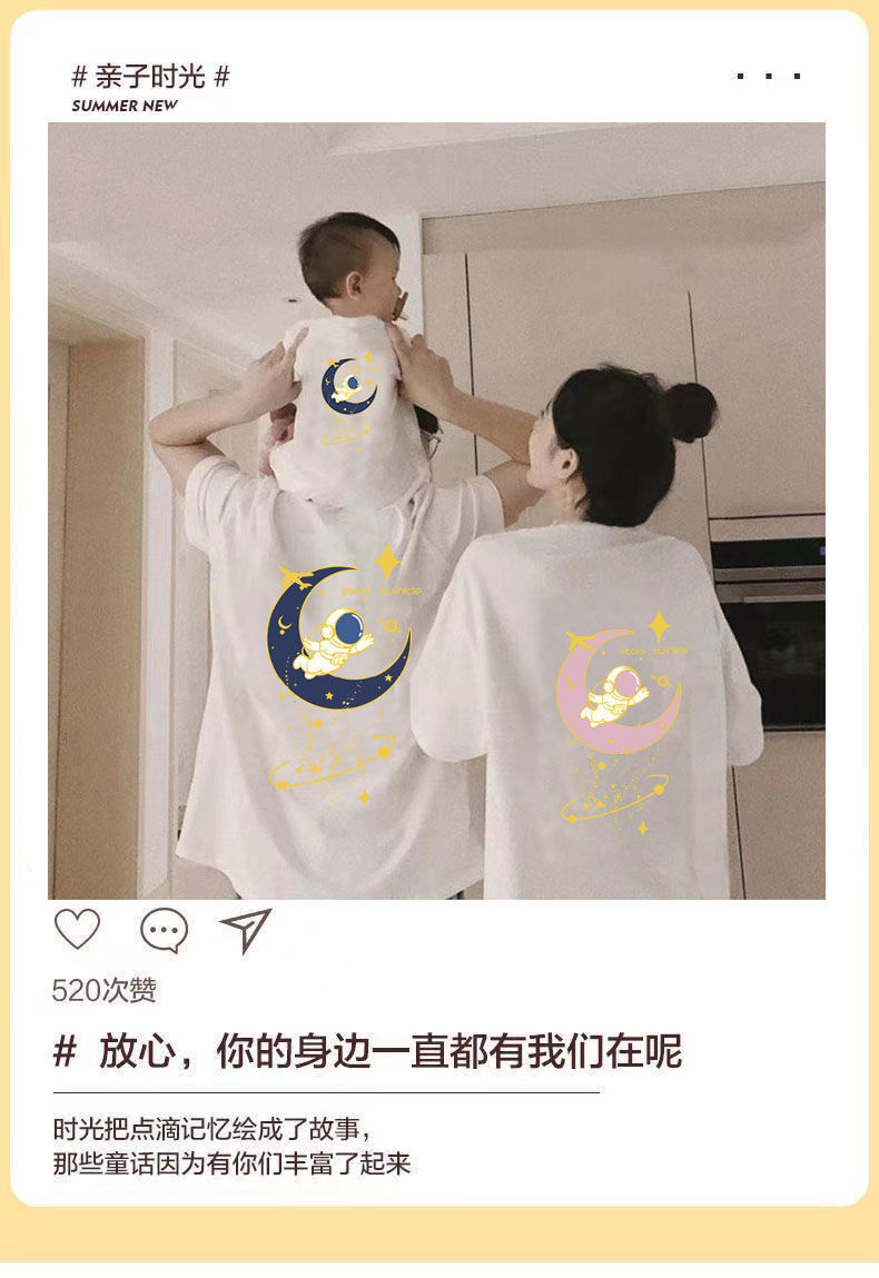 新款亲子装一家三四口母子母女装炸街宁航员纯棉短袖T恤韩版潮流国庆清明出游