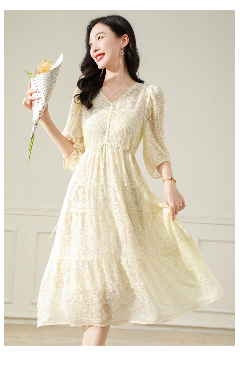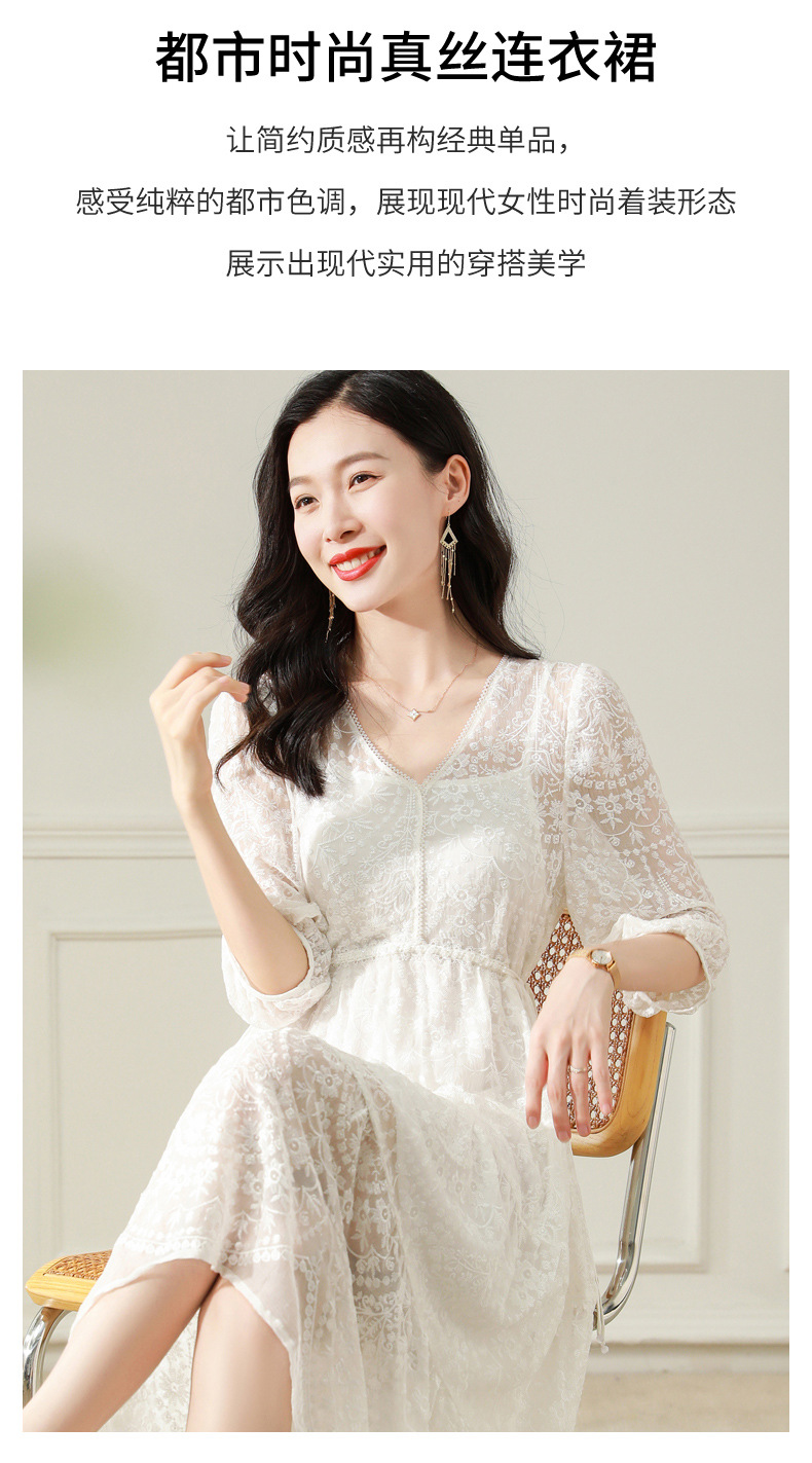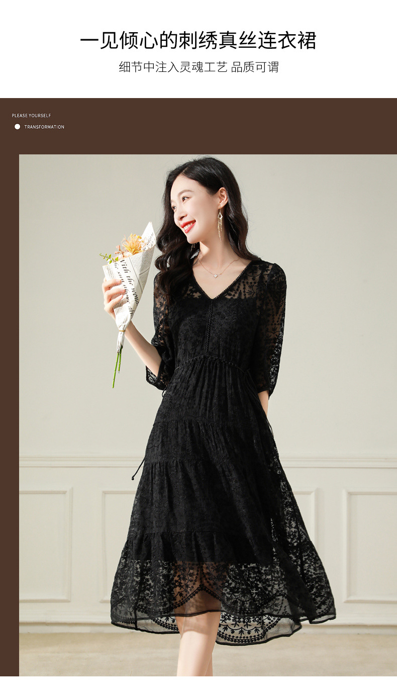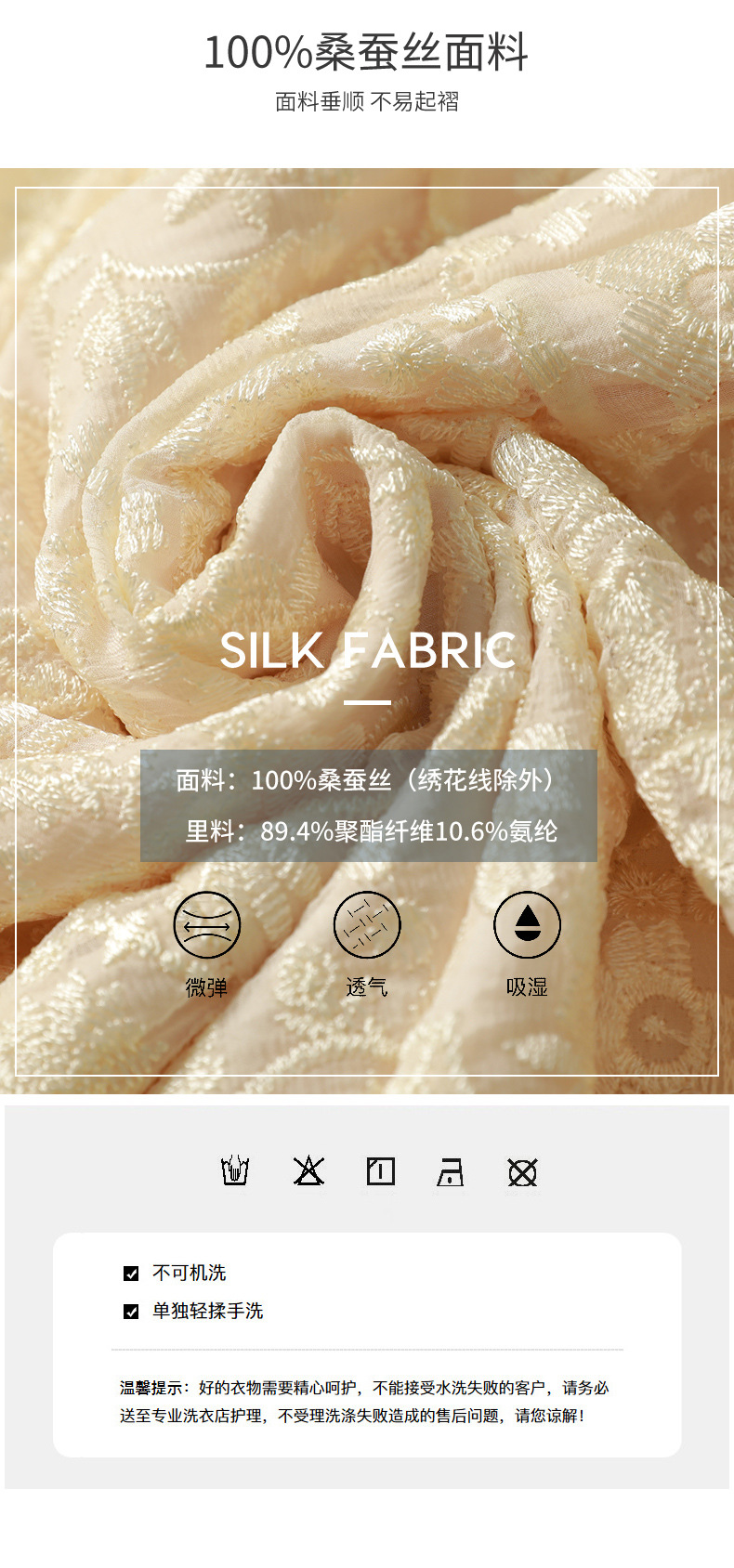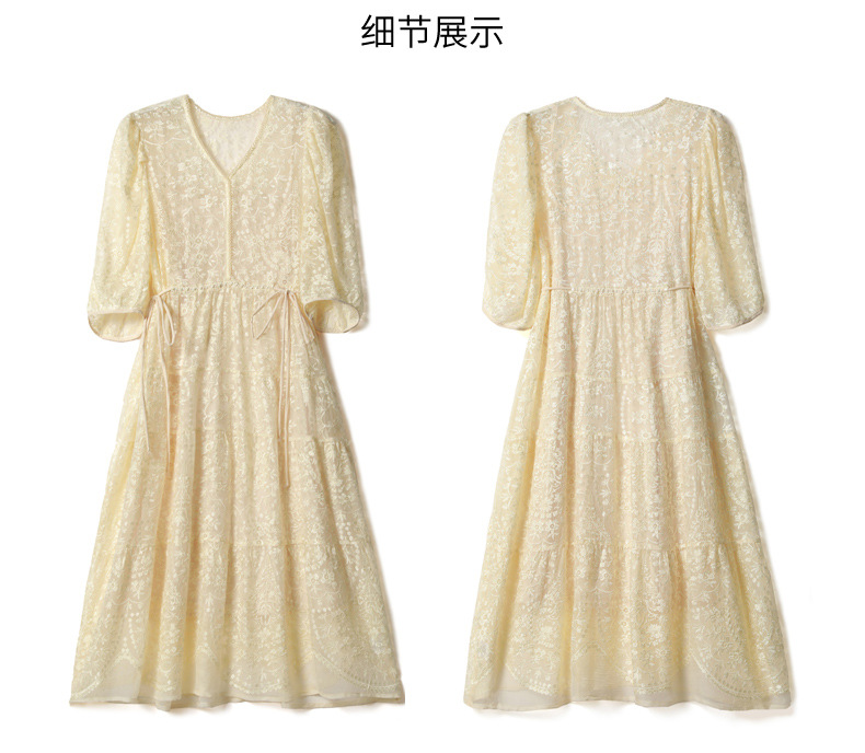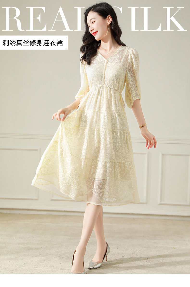 夏季新款,真丝短袖设计感绣花温柔风优雅连衣裙ASE-X8221