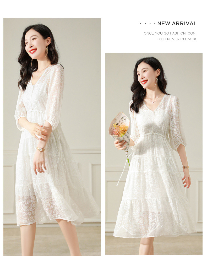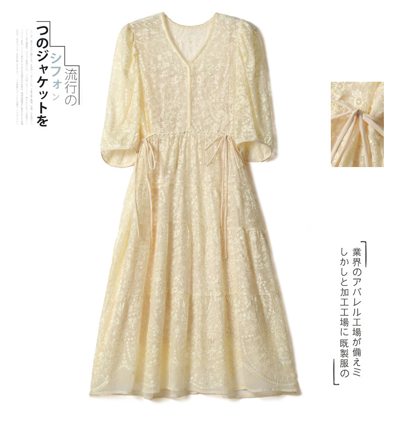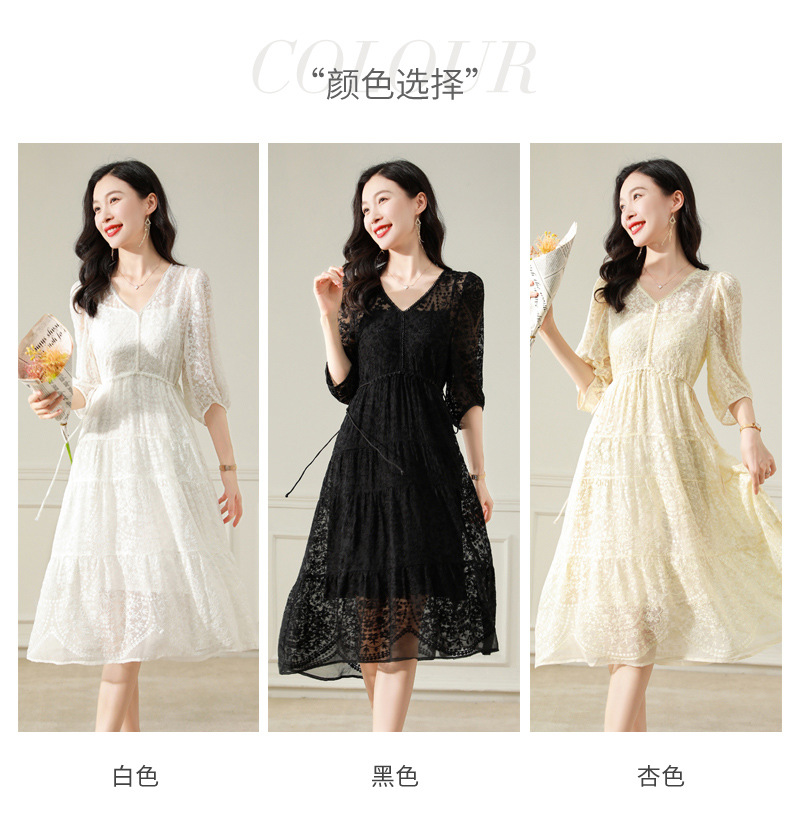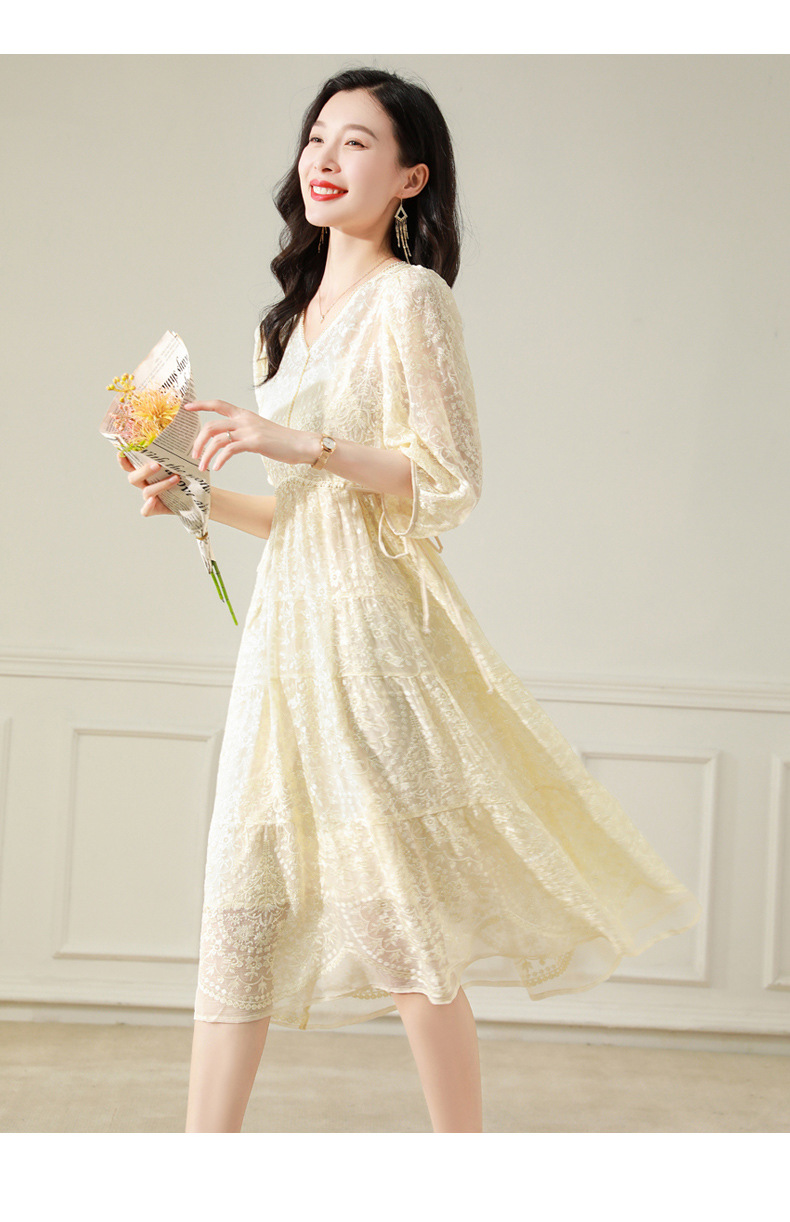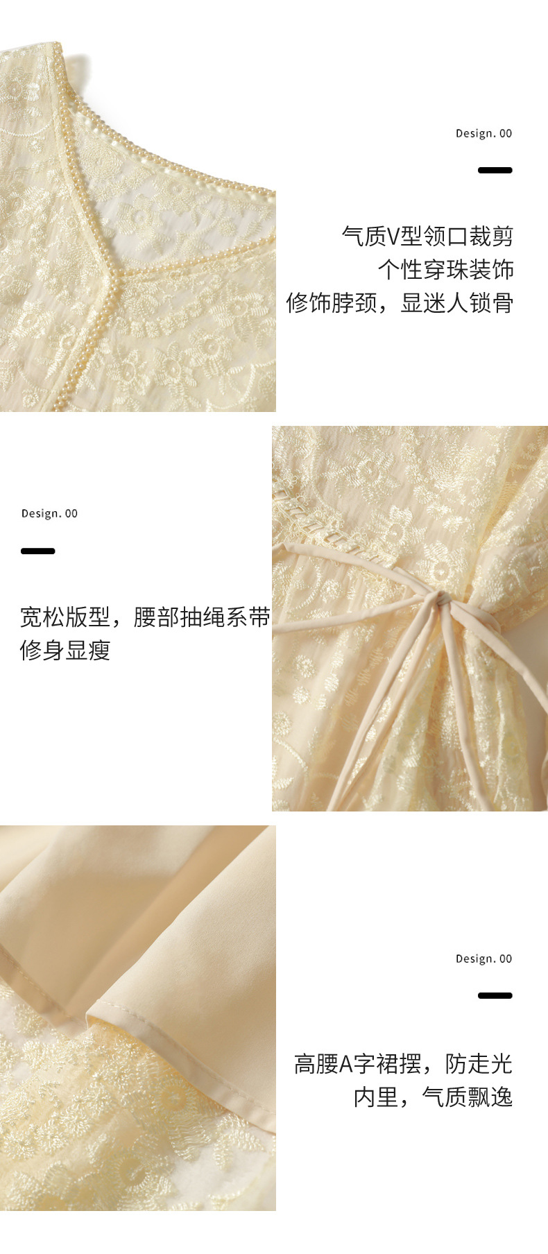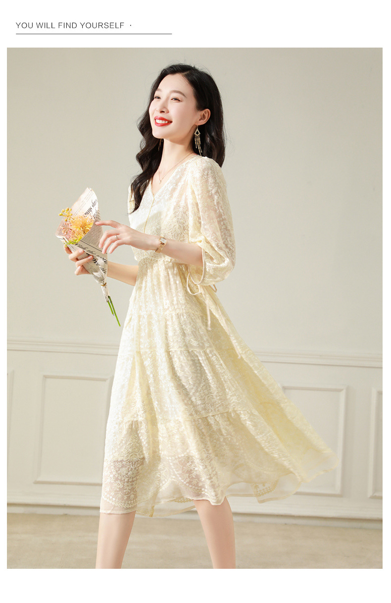 夏季新款,真丝短袖设计感绣花温柔风优雅连衣裙ASE-X8221