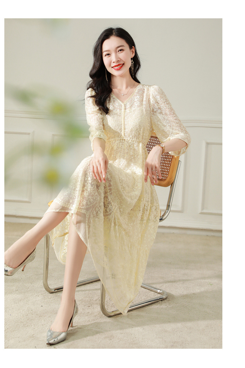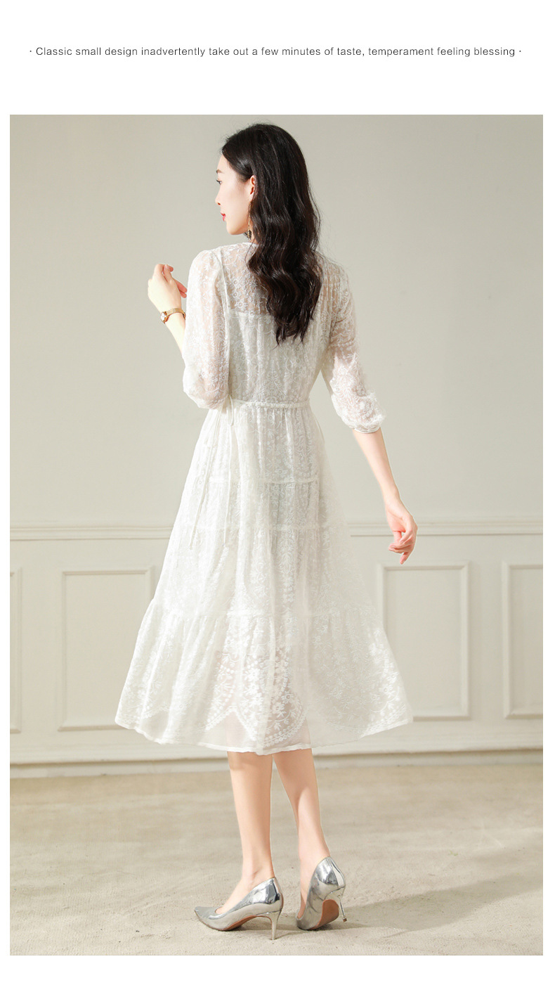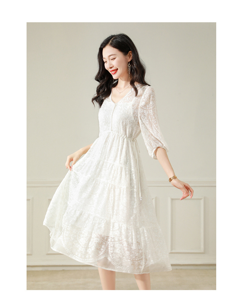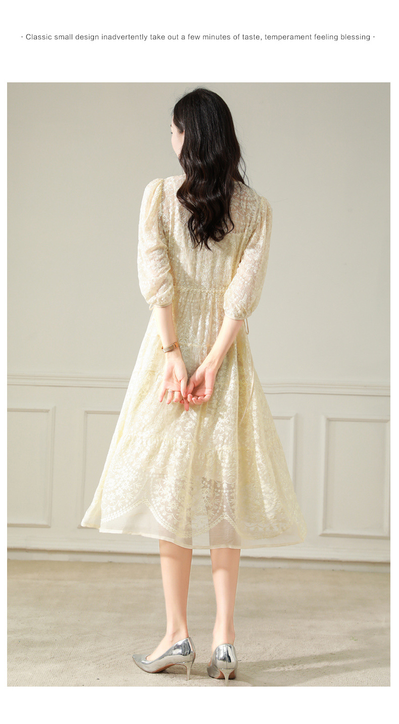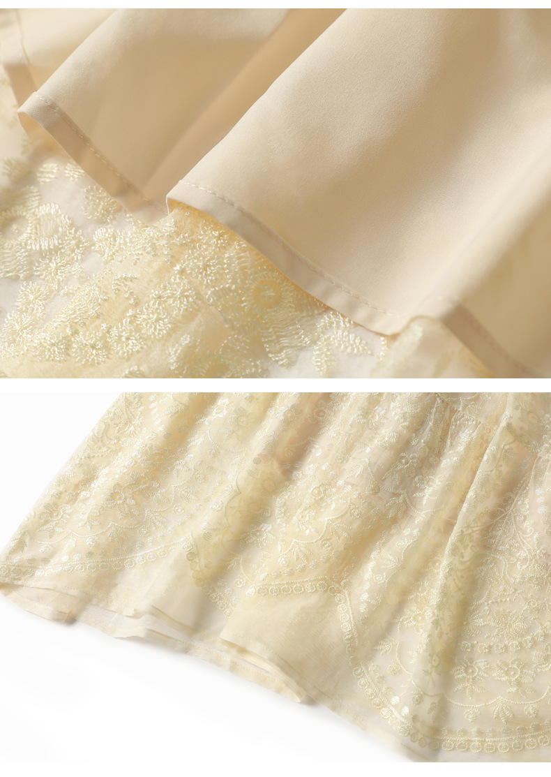夏季新款,真丝短袖设计感绣花温柔风优雅连衣裙ASE-X8221