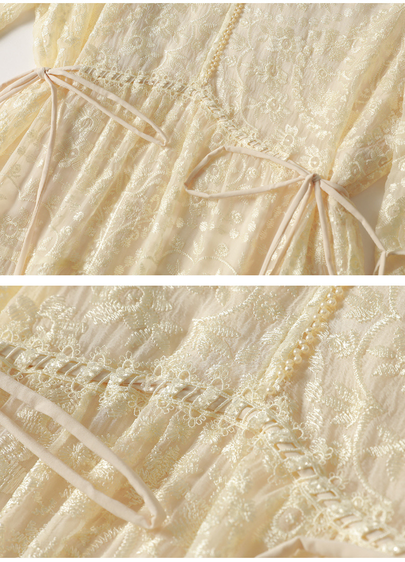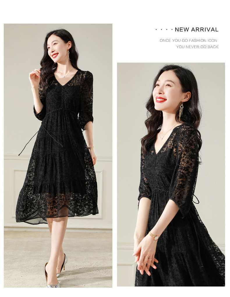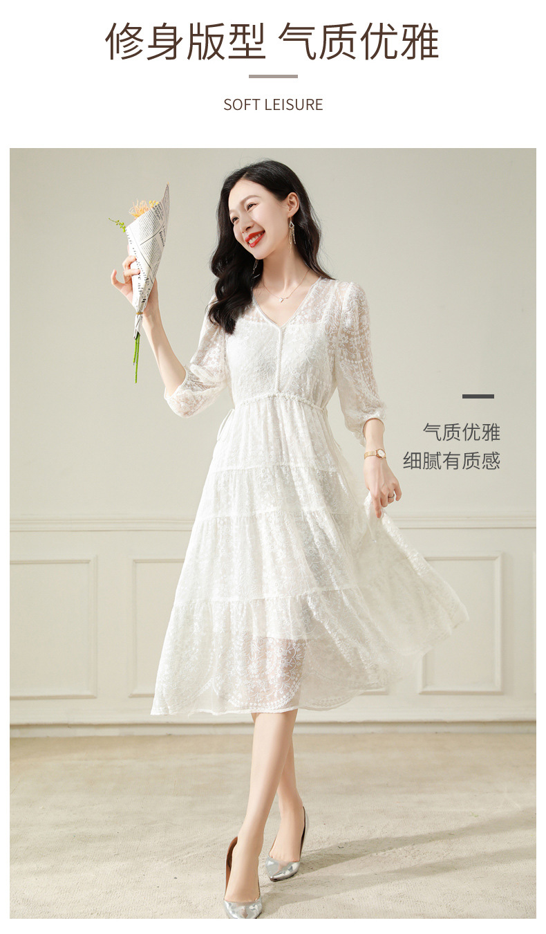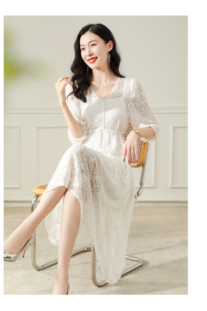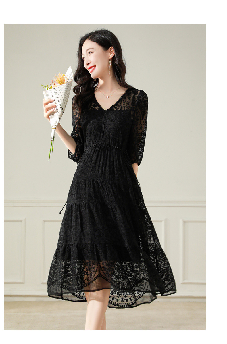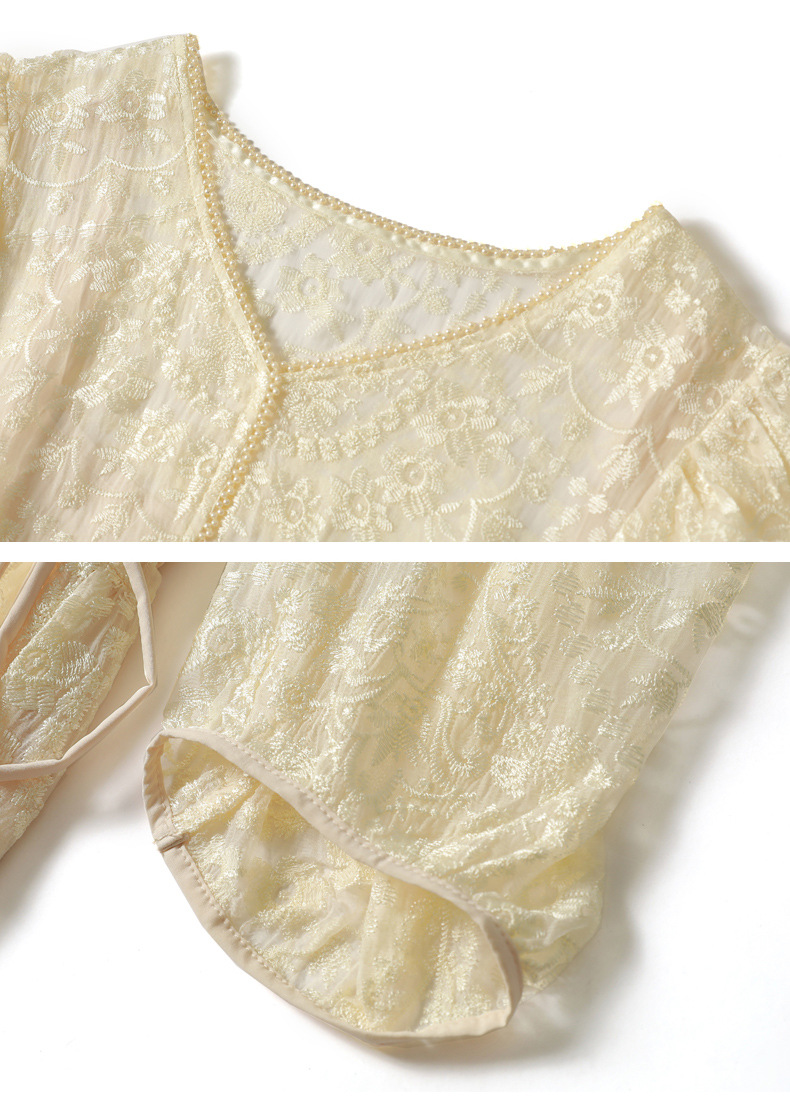夏季新款,真丝短袖设计感绣花温柔风优雅连衣裙ASE-X8221