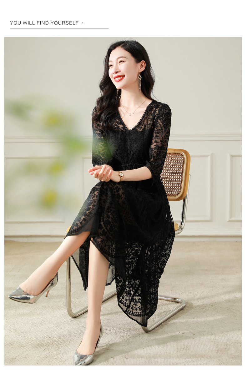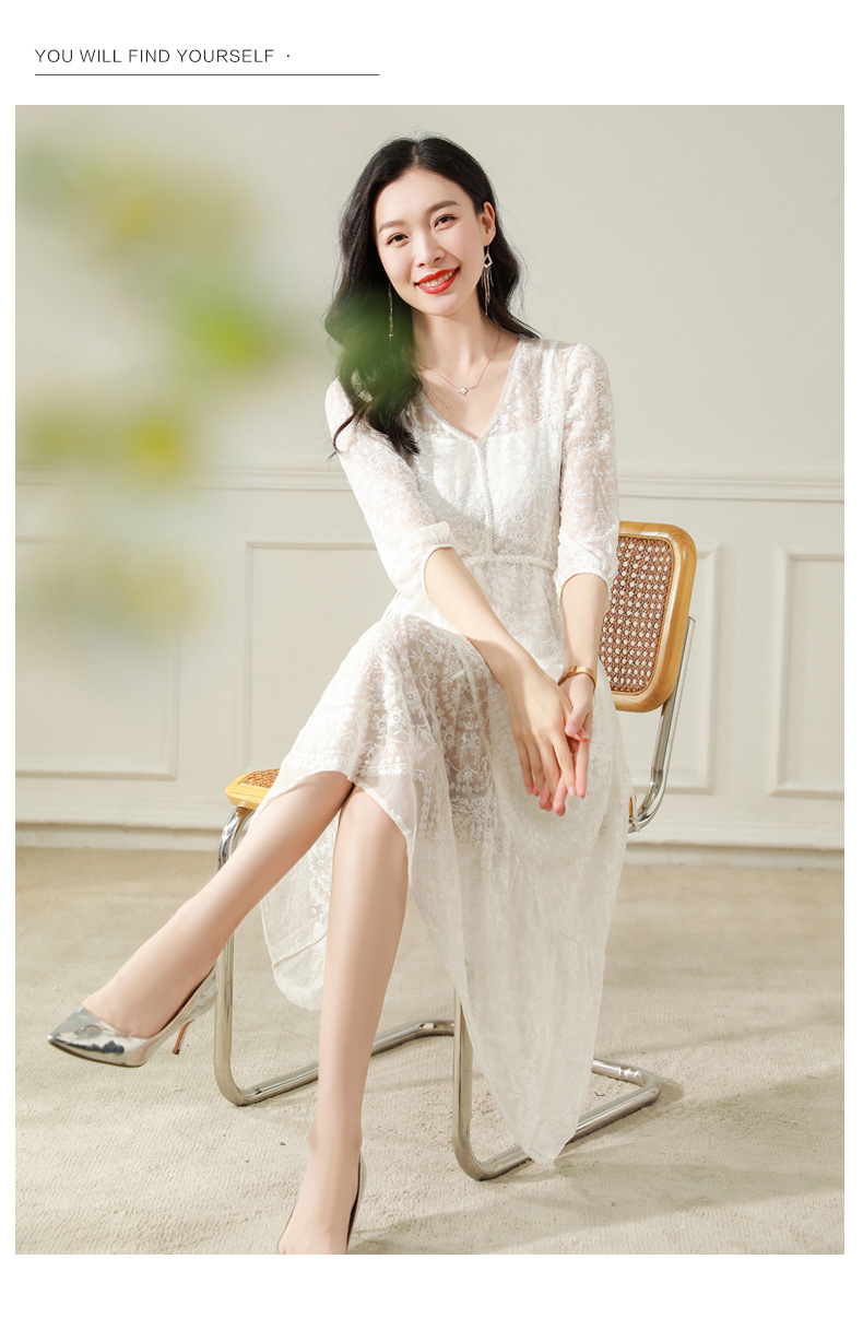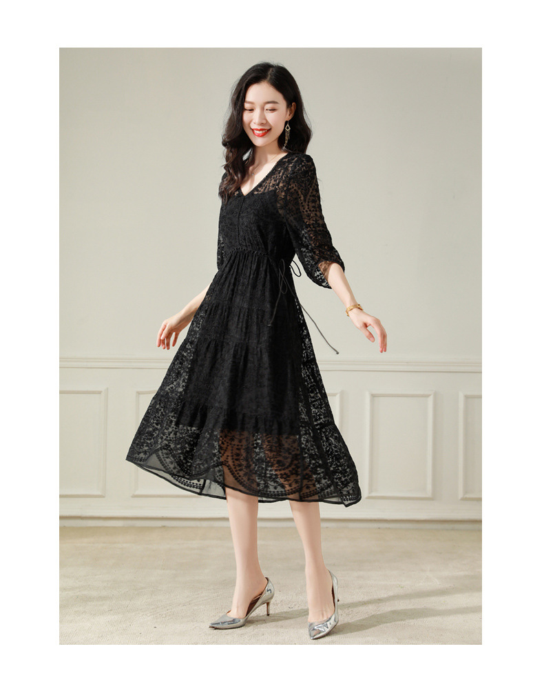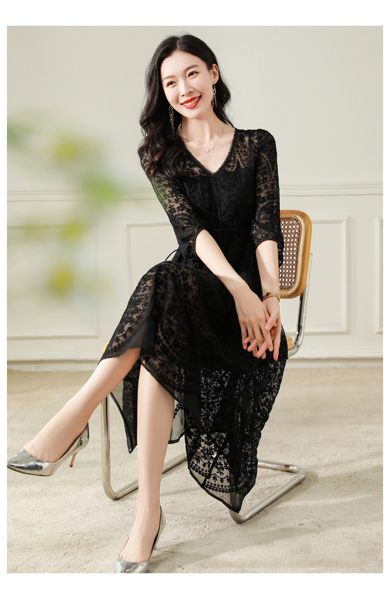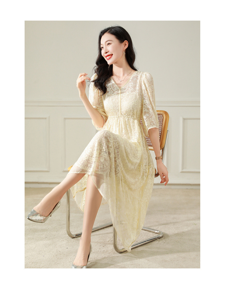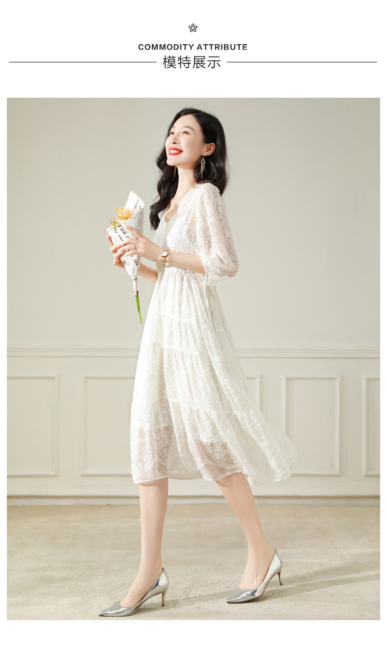 夏季新款,真丝短袖设计感绣花温柔风优雅连衣裙ASE-X8221