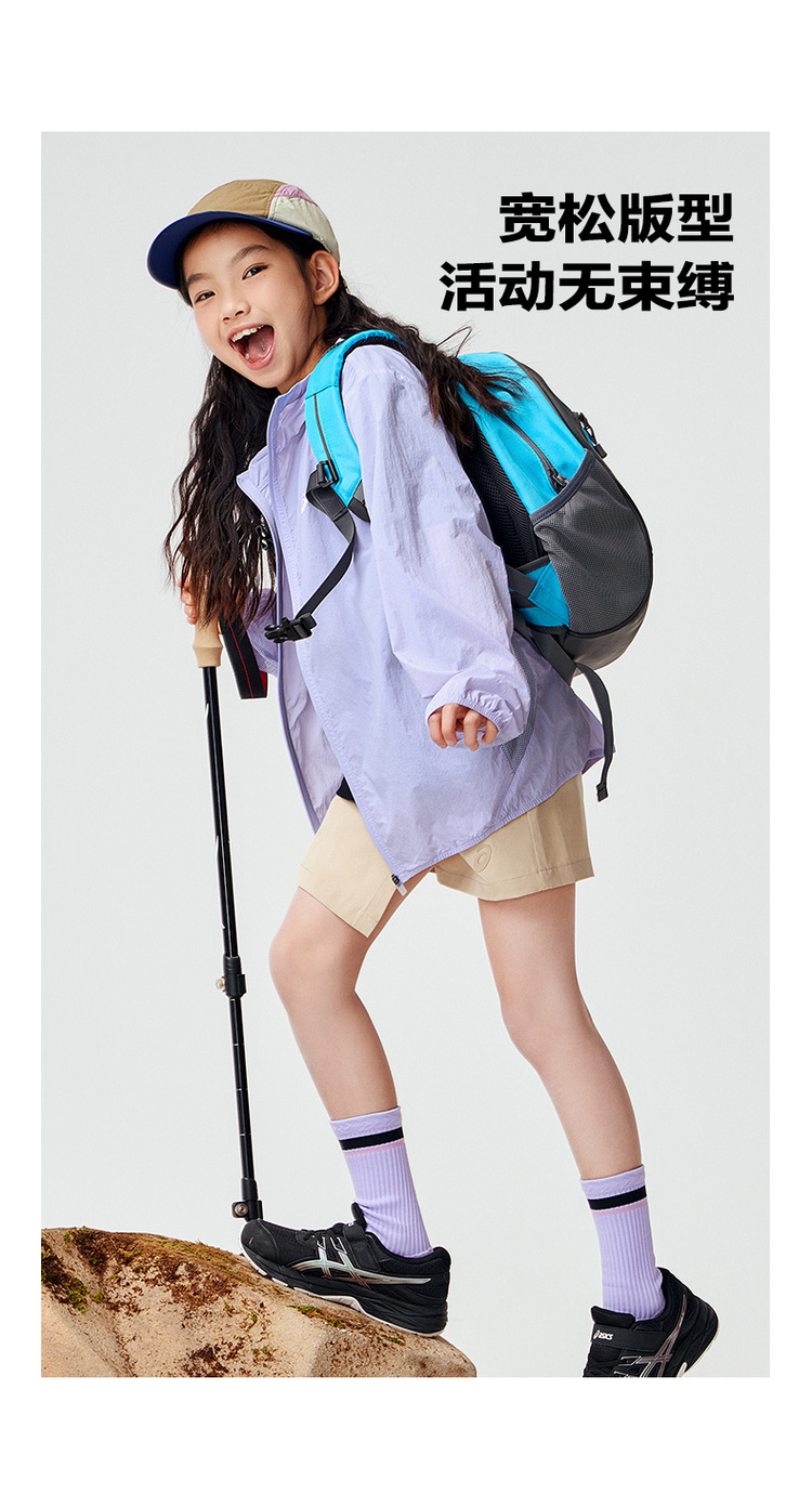 ASICS/亚瑟士童装2024春夏季男女童UPF50+防晒服防紫外线梭织外套