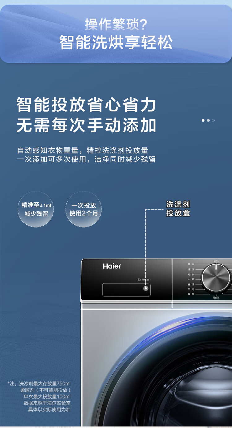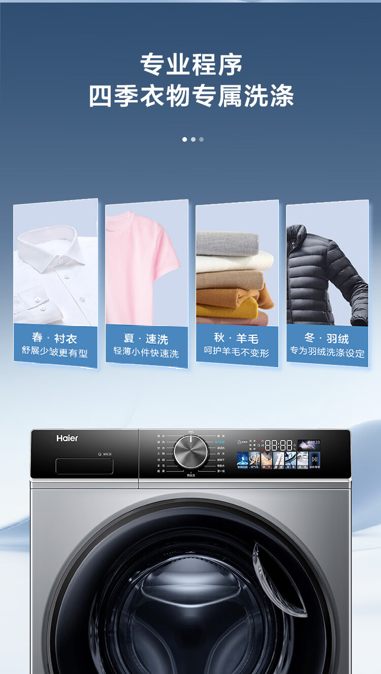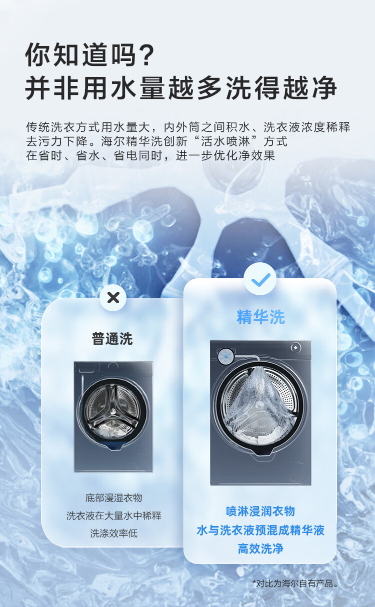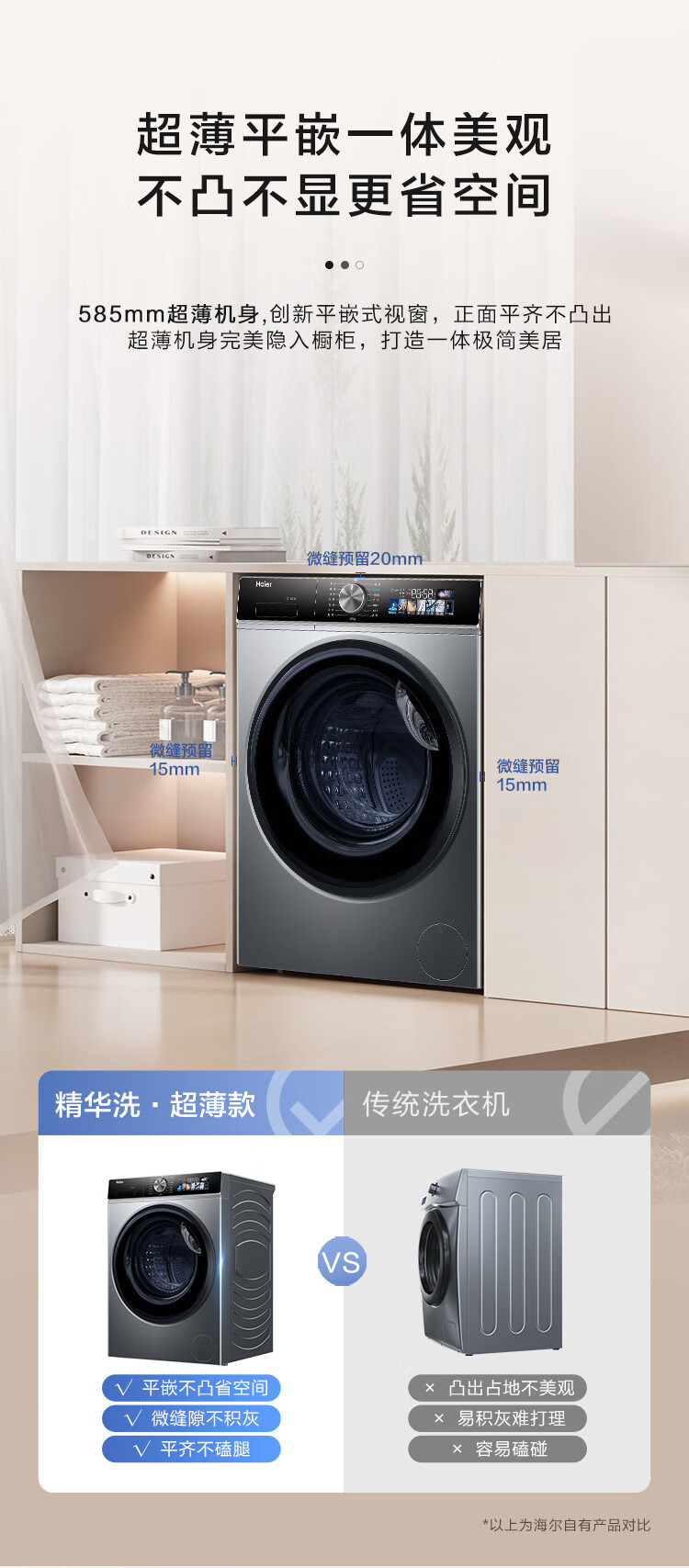 海尔(Haier)【精华洗2.0】10KG全自动滚筒洗衣机家用超薄变频智能投放双喷淋除菌螨+洗烘一体XQG100-HBD12519