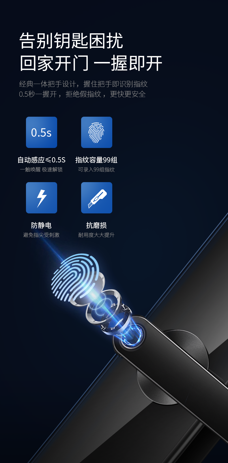 亚太天能一握即开指纹锁E16智能锁旗舰店电子锁自动感应智能门锁E16