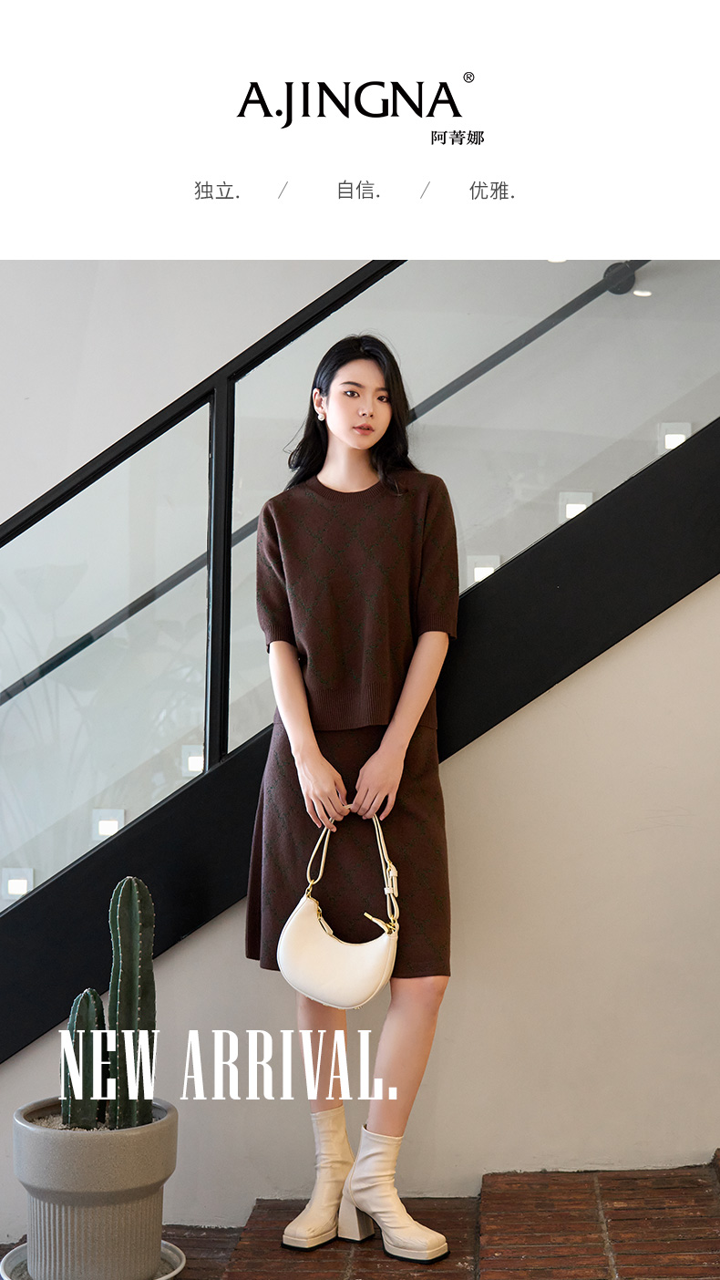 【积分兑换】阿菁娜H型圆领短袖针织衫上衣A28D301020