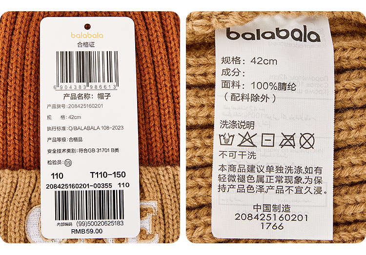 巴拉巴拉balaOne儿童帽子男女童比尼帽舒适保暖2025新款时尚简约