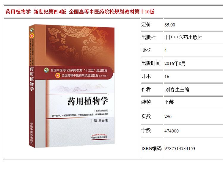 药用植物学 新世纪第四版 刘春生主编 全国高等中医药院校规划教材 第十10版 十三五 供中药学中药资源与开发药学等专业用 中医药