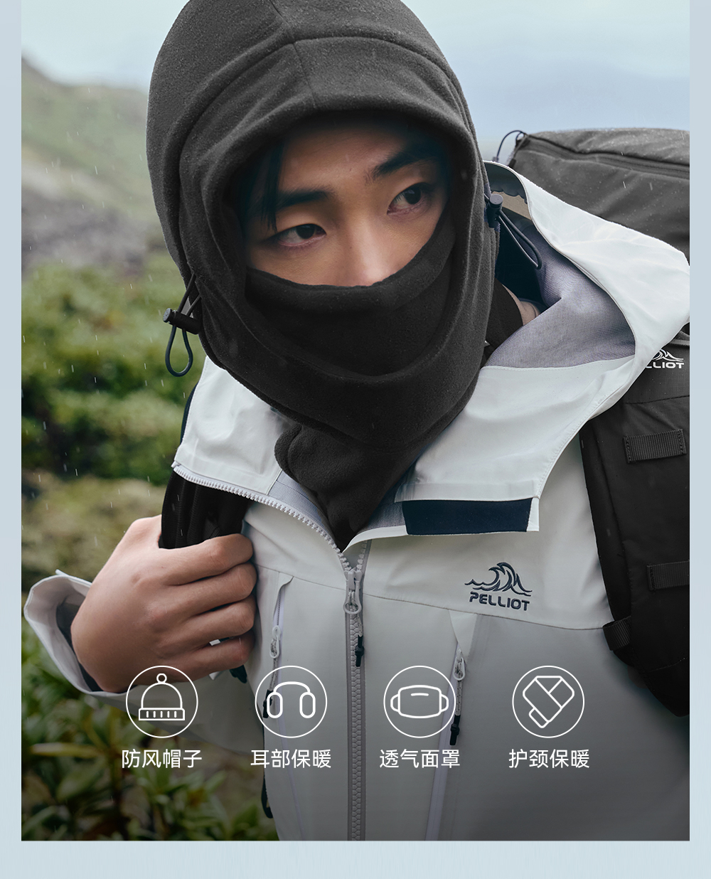 伯希和户外抓绒帽子女新款Polartec登山保暖头套徒步防风面罩男冬