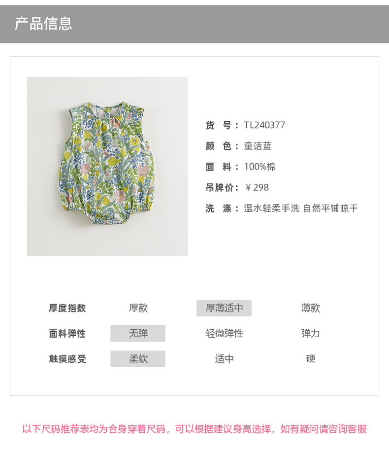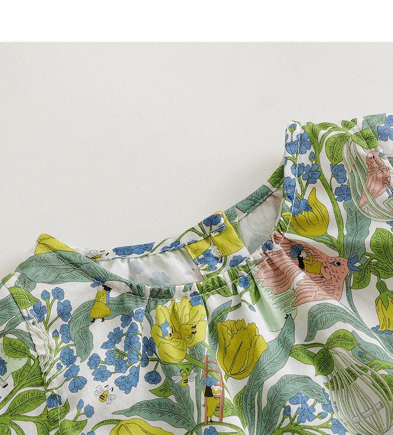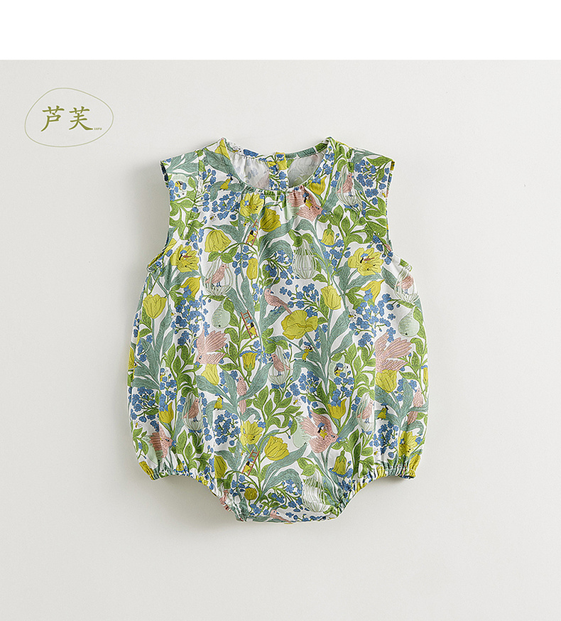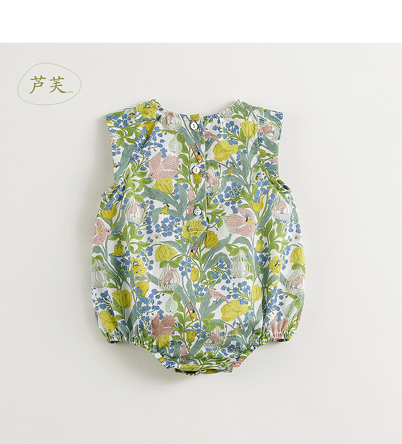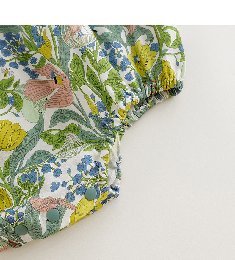 【马克珍妮 芦芙】女宝宝花鸟童话飞袖连体衣婴儿哈衣夏装240377