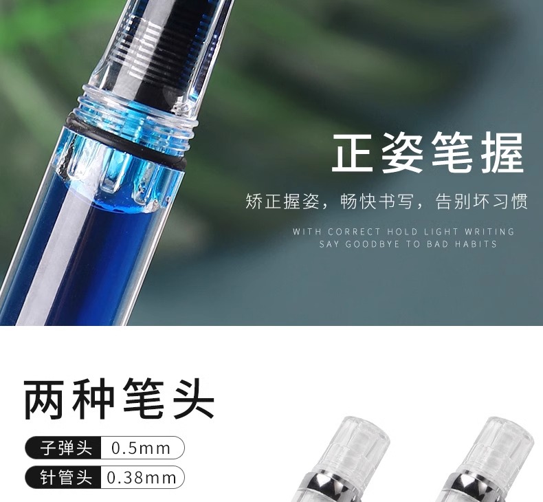 新品!【2支笔赠送墨囊和吸墨器】钢笔式可擦中性笔水笔学生专用直液式走珠笔宝珠笔非碳素大容量送彩墨 0.38mm全针管0.5mm子弹头圆珠笔签字笔
