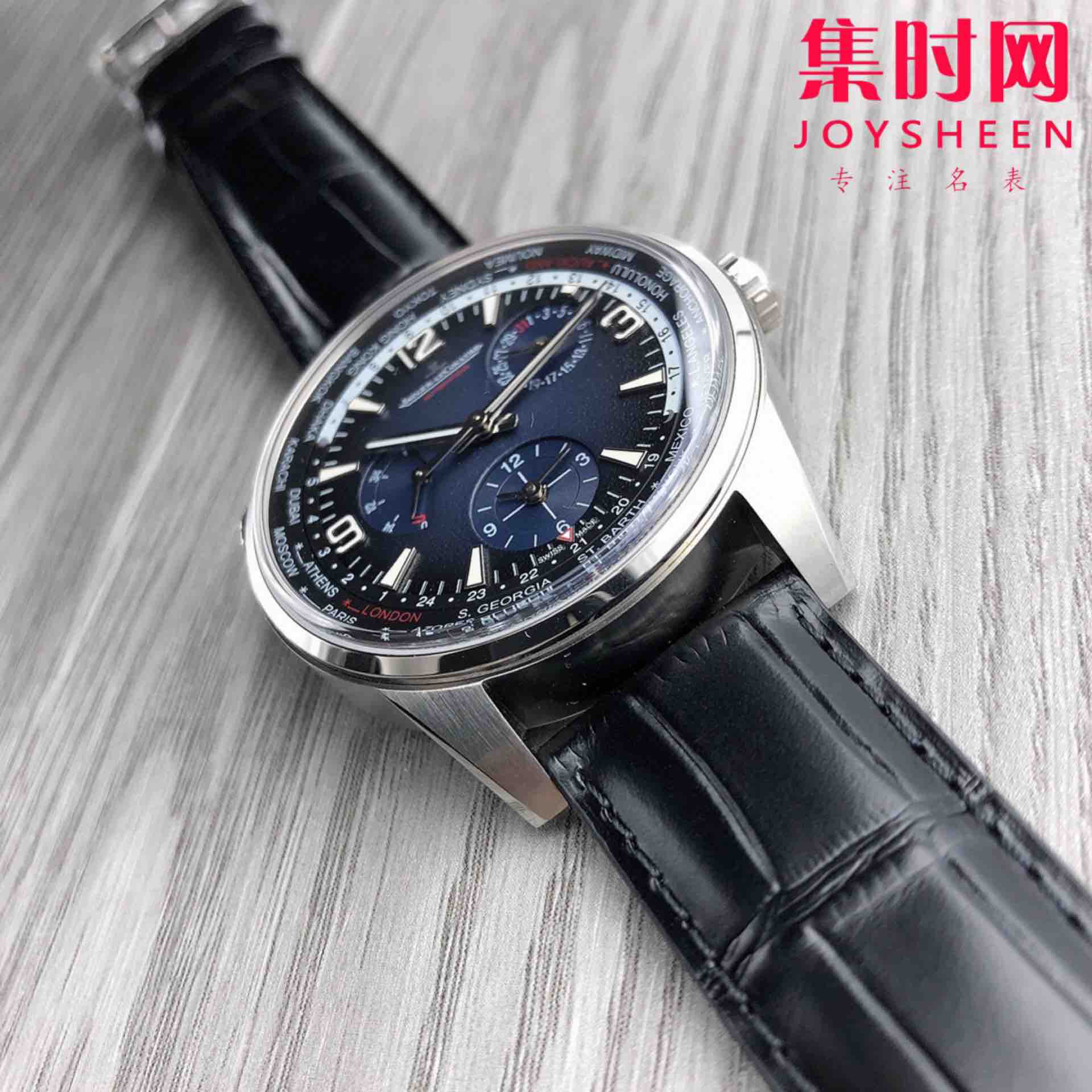 TWA 积家 北宸系列 904847J Geographic WT"全球限量版"地理学家世界时腕表采用蓝黑渐变色与全黑色表盘 腕表的凸缘显示全球24个时区 成为行动派男士旅行期间的可靠搭档 佩戴者可透过10时位置的表冠设定 表盘尺寸42mm表壳 316L钢壳 搭配拱蓝宝石"锅盖"镜面 采用亚洲机芯复刻版:936A/1自动上链 技术无与伦比 城市名部分以乳白色为基底 2时位置的日历显示 6时位置的第二时区显示和10时位置的动力储存显示副表盘饰以太阳放射状饰纹 进口牛皮 原装折叠扣