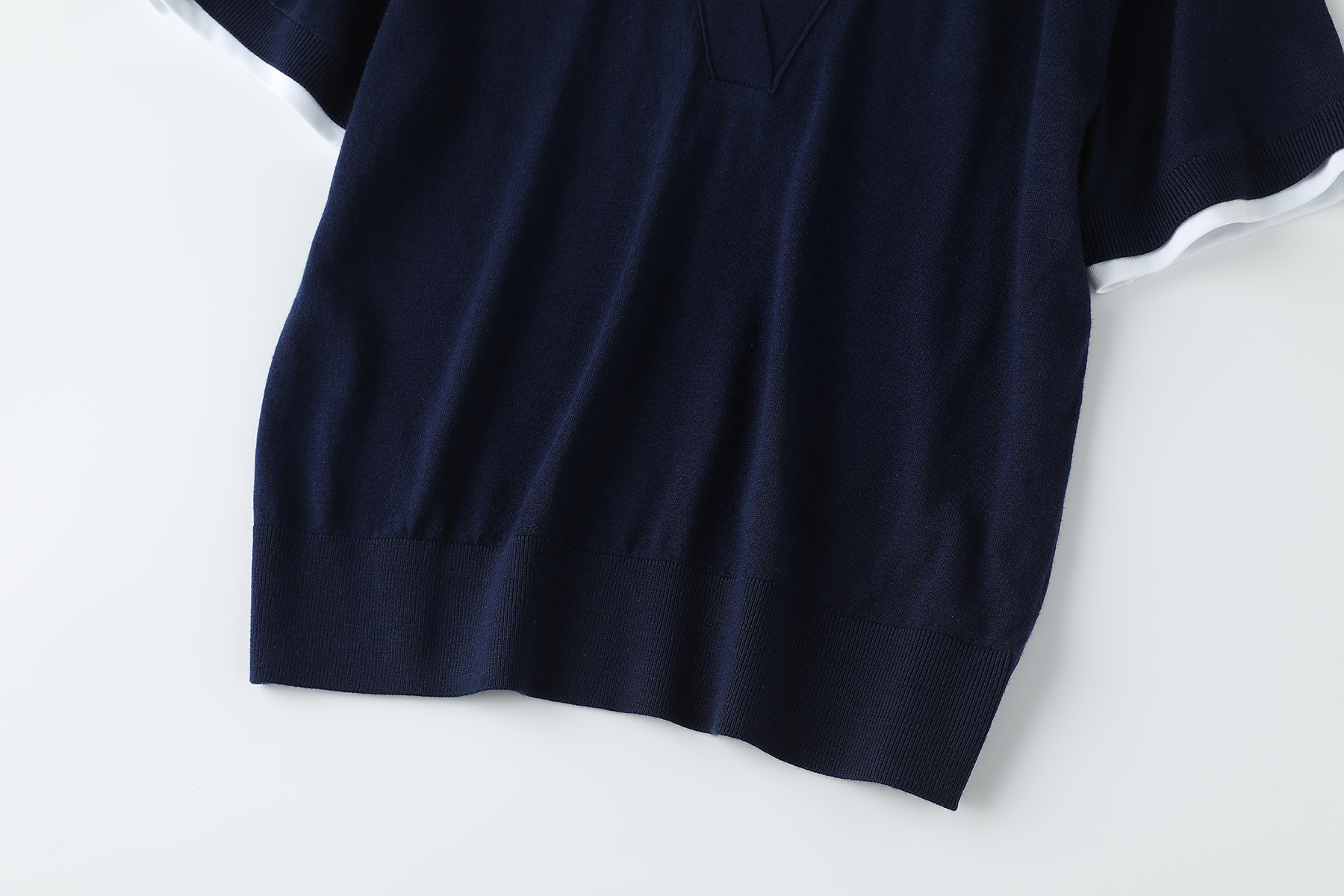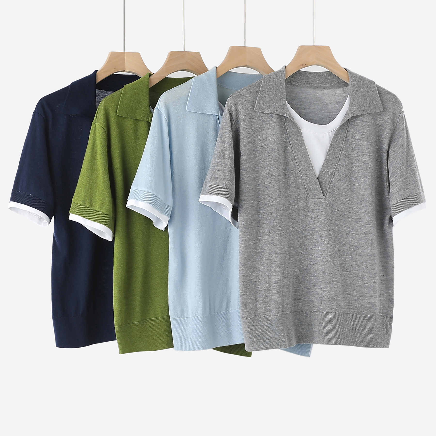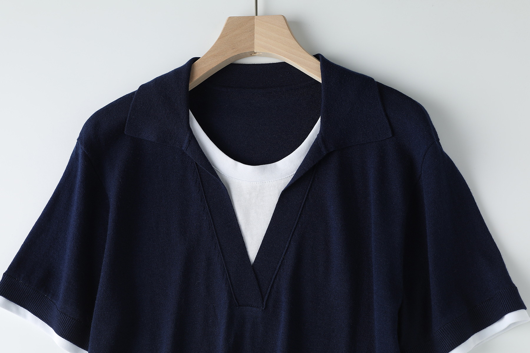 套头针织衫,释放自在舒适。POLO廓形设计自带遮肉显瘦功能更是随性惬意。V领舒适有型,集软糯质感和率性线条于一身实穿性超强又不失新意。采用了假两件的设计这样增加了层次感,摆脱了常规的无趣感,让穿搭更有活力