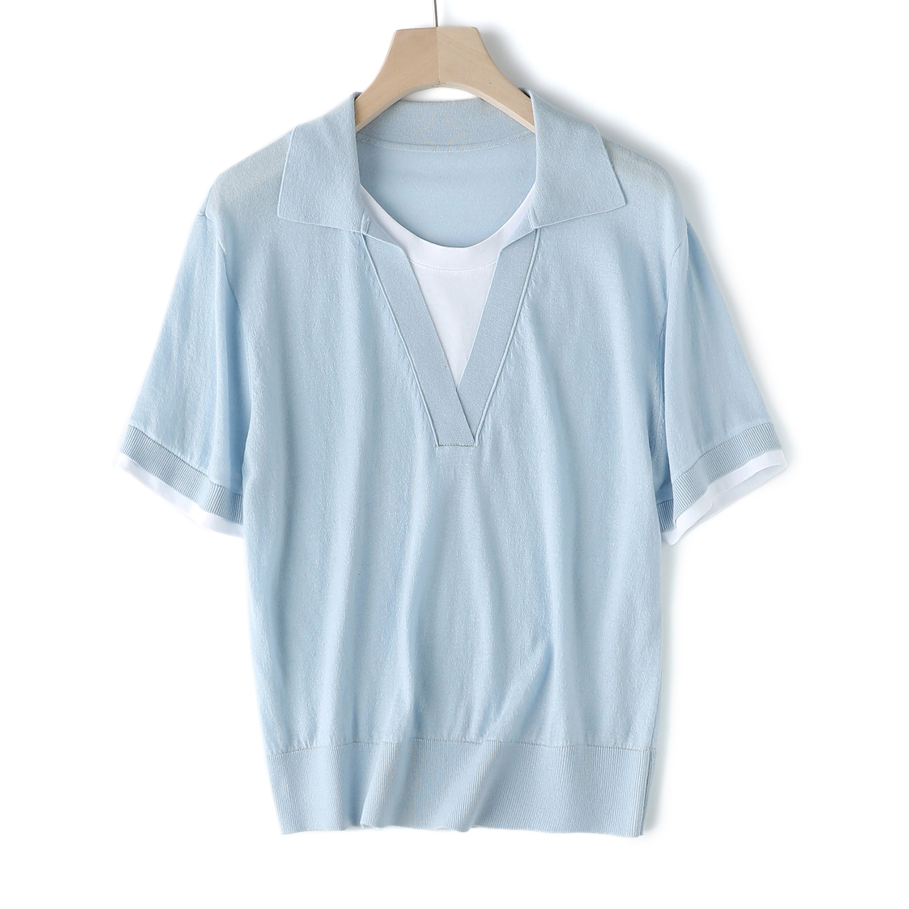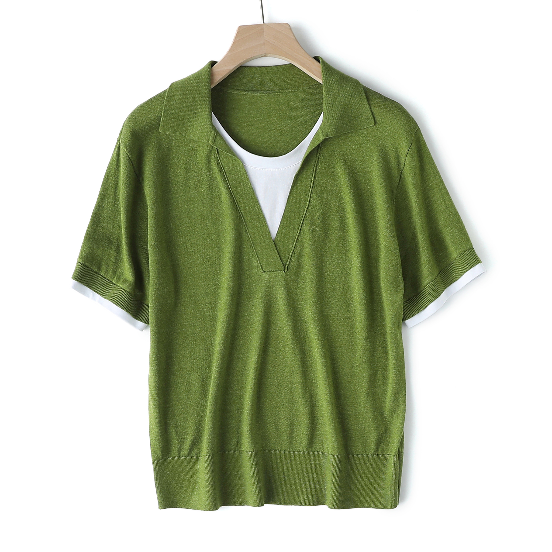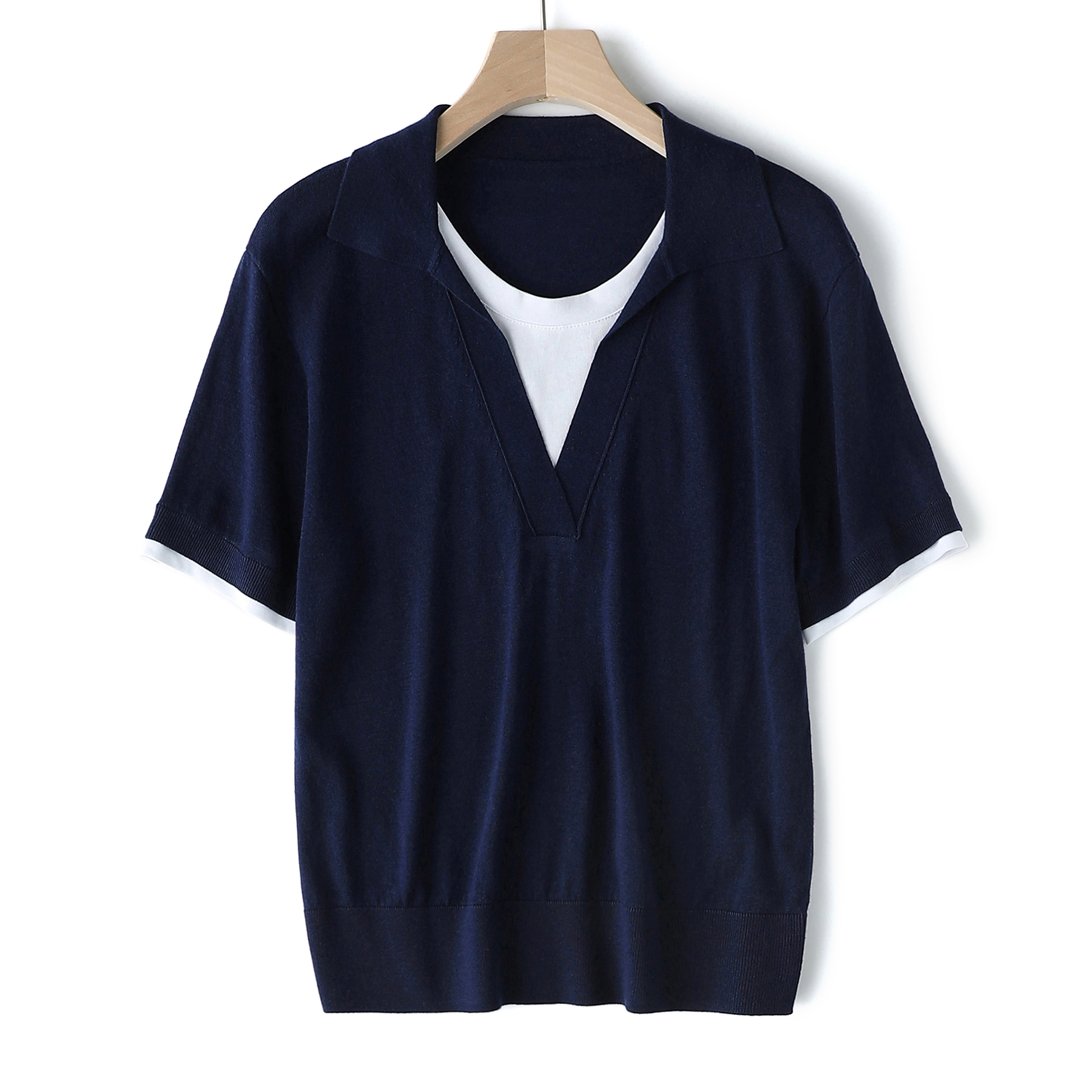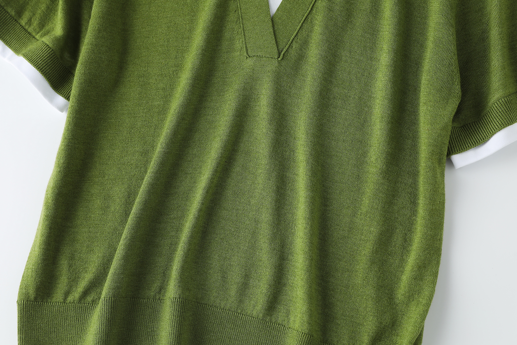 套头针织衫,释放自在舒适。POLO廓形设计自带遮肉显瘦功能更是随性惬意。V领舒适有型,集软糯质感和率性线条于一身实穿性超强又不失新意。采用了假两件的设计这样增加了层次感,摆脱了常规的无趣感,让穿搭更有活力