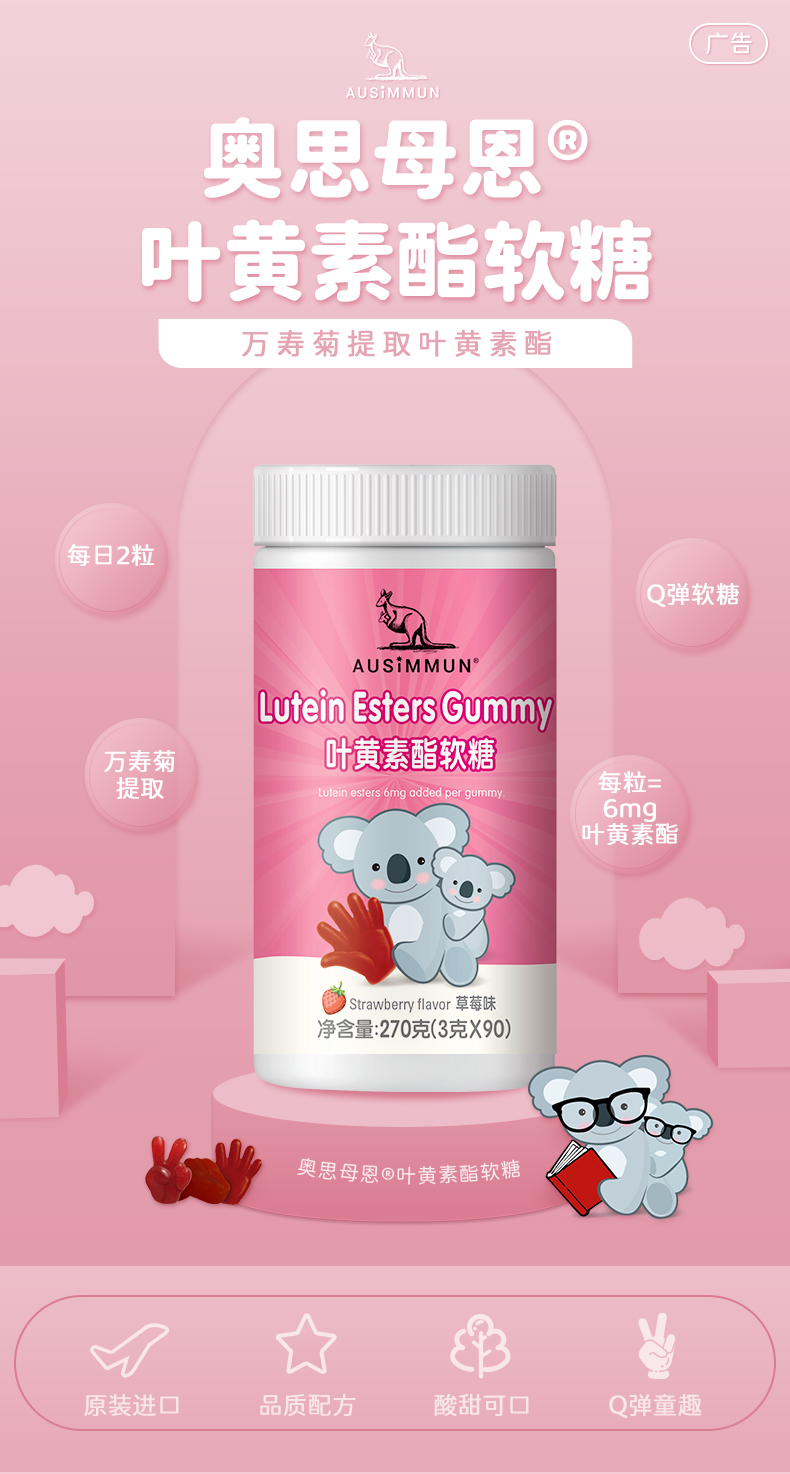 奥思母恩有糖版叶黄素酯软糖青少年健康凝胶糖花青素维生素【效期:2025年6月】