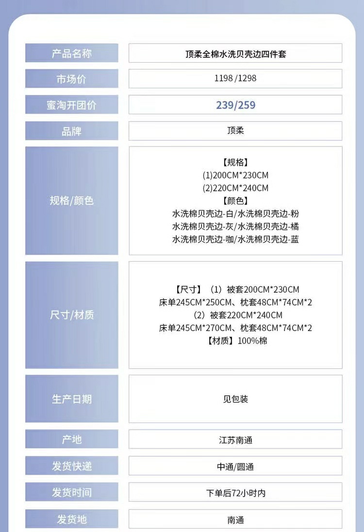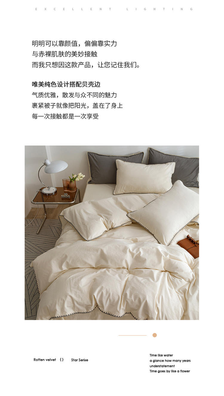 园园亲选南通家居床上用品四件套!顶级全面水洗贝壳边四件套