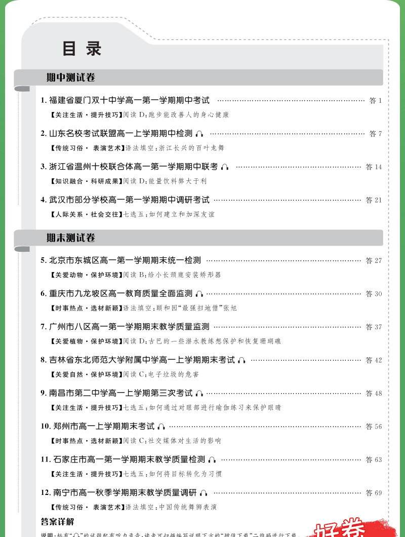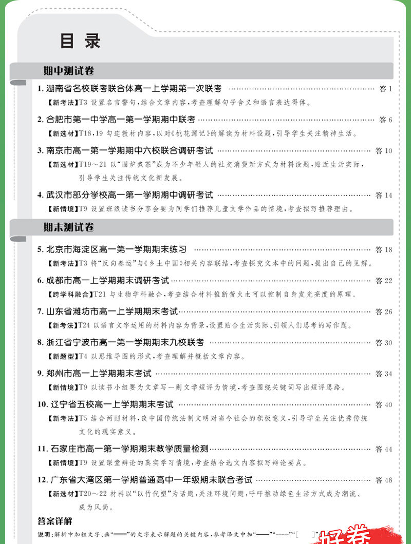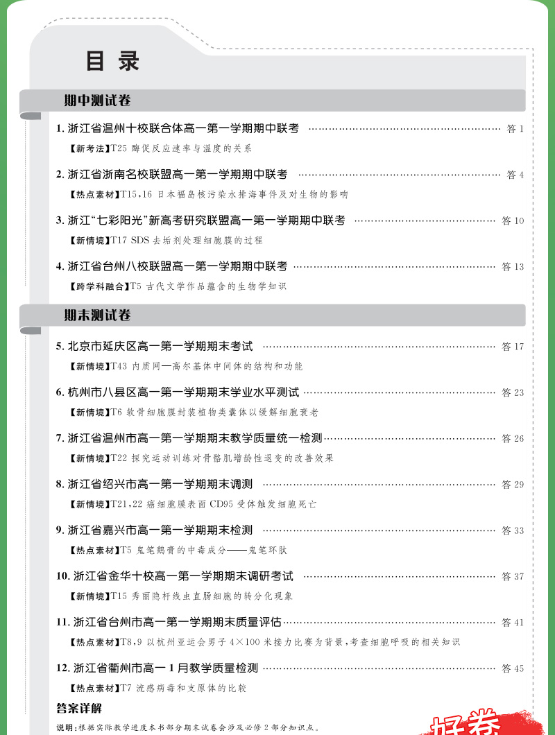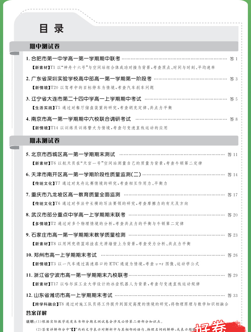 天利38套 2025高中名校期中期末联考测试卷2024-2025学年复习推荐 高一第一学期