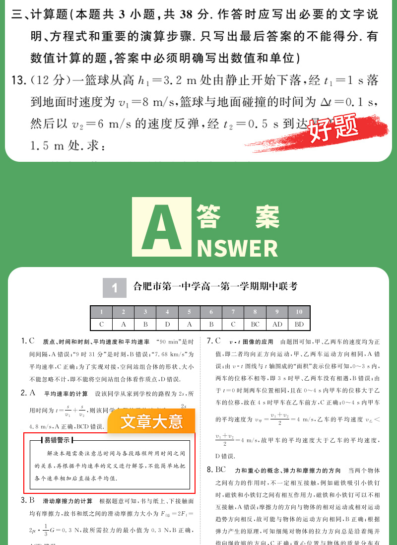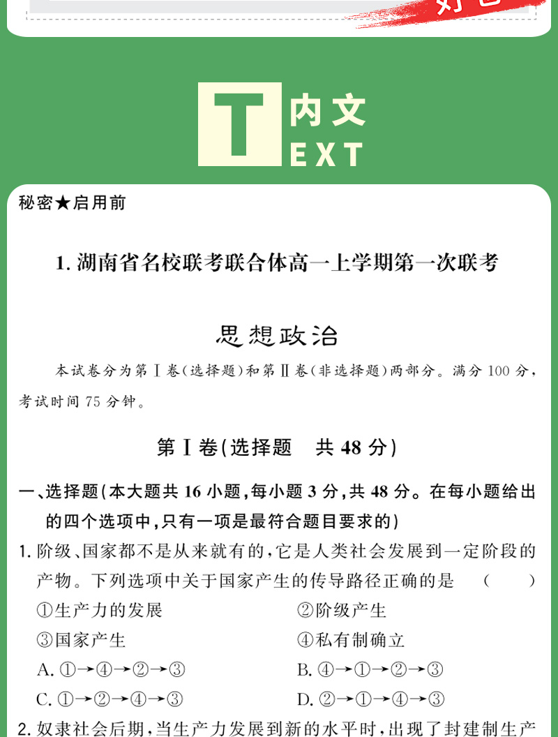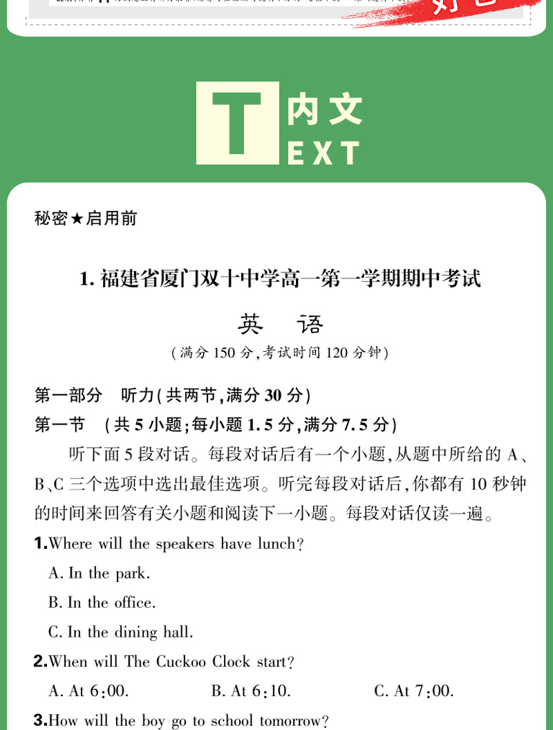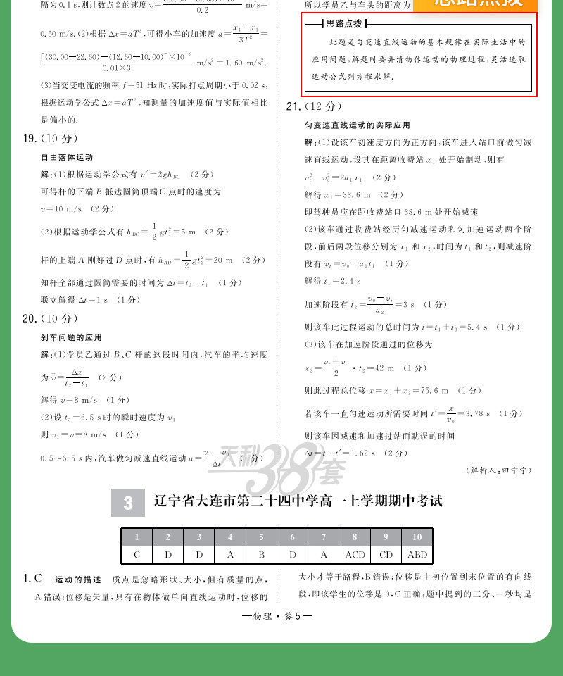 天利38套 2025高中名校期中期末联考测试卷2024-2025学年复习推荐 高一第一学期