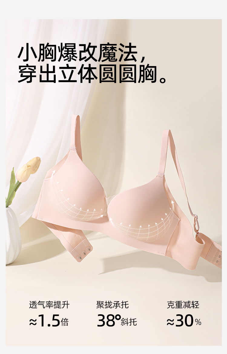 熳洁儿 无痕内衣女小胸聚拢文胸无钢圈舒适一片式防滑不跑杯23261530
